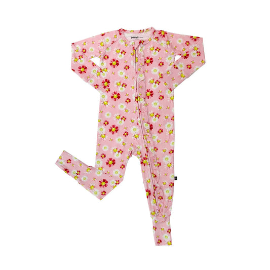 Pink Flower Ruffle Footie