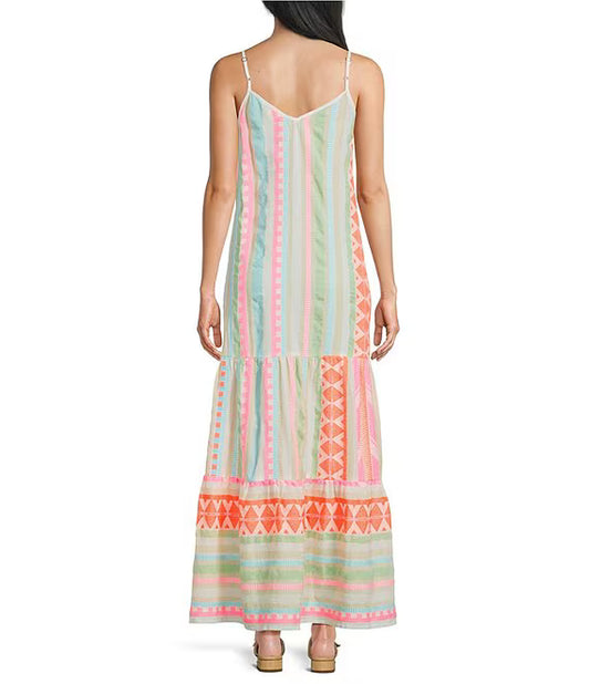 Neon Aztec A-Line Maxi Dress