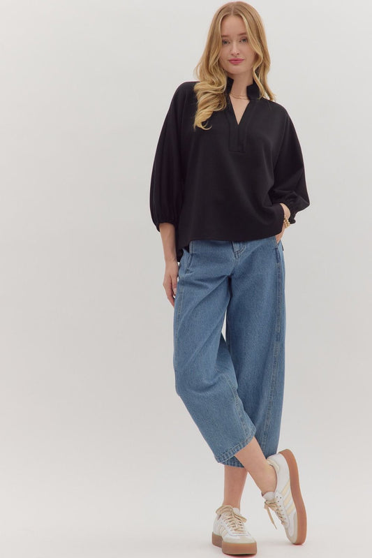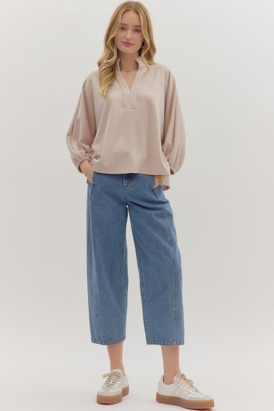 Ivory Puff Sleeve Top - Green/Pink Detail