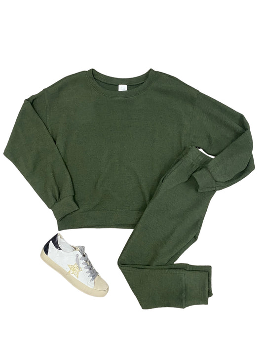 Olive LS Fleece Top