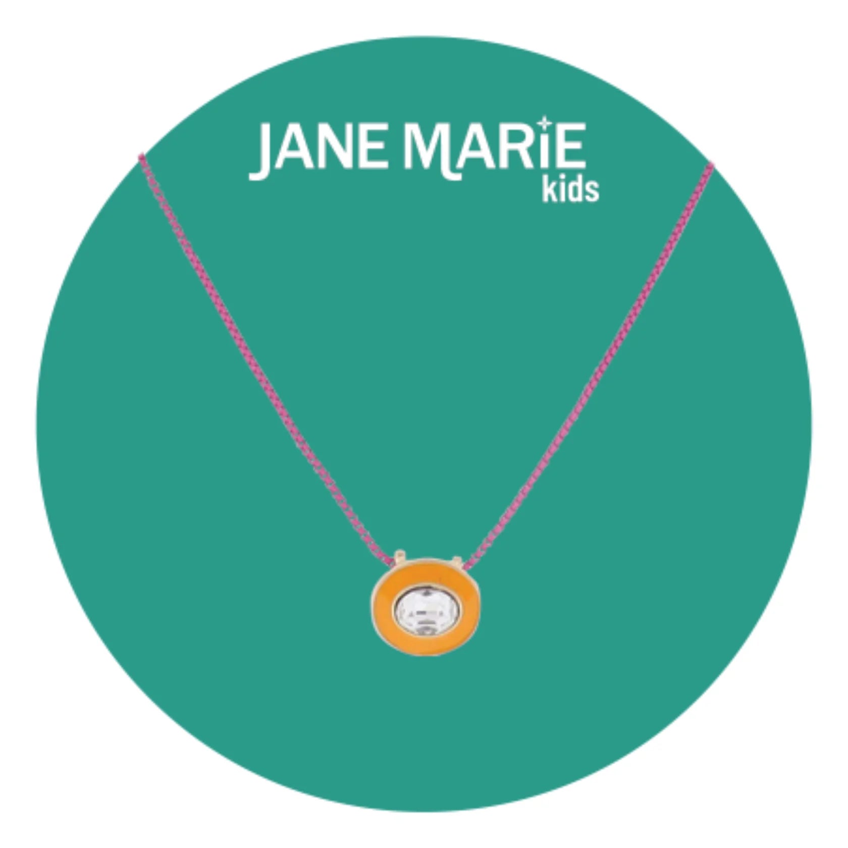 This vibrant 14" chain necklace brings instant fun to any kid's jewelry collection! Featuring a bold hot pink chain paired with an eye-catching orange enamel and clear crystal oval pendant, it's the perfect accessory for adding personality to everyday outfits. The playful color combo makes it ideal for fashion-forward kids who love making a statement. Lightweight and comfortable for all-day wear, this necklace is sure to become a favorite go-to piece.