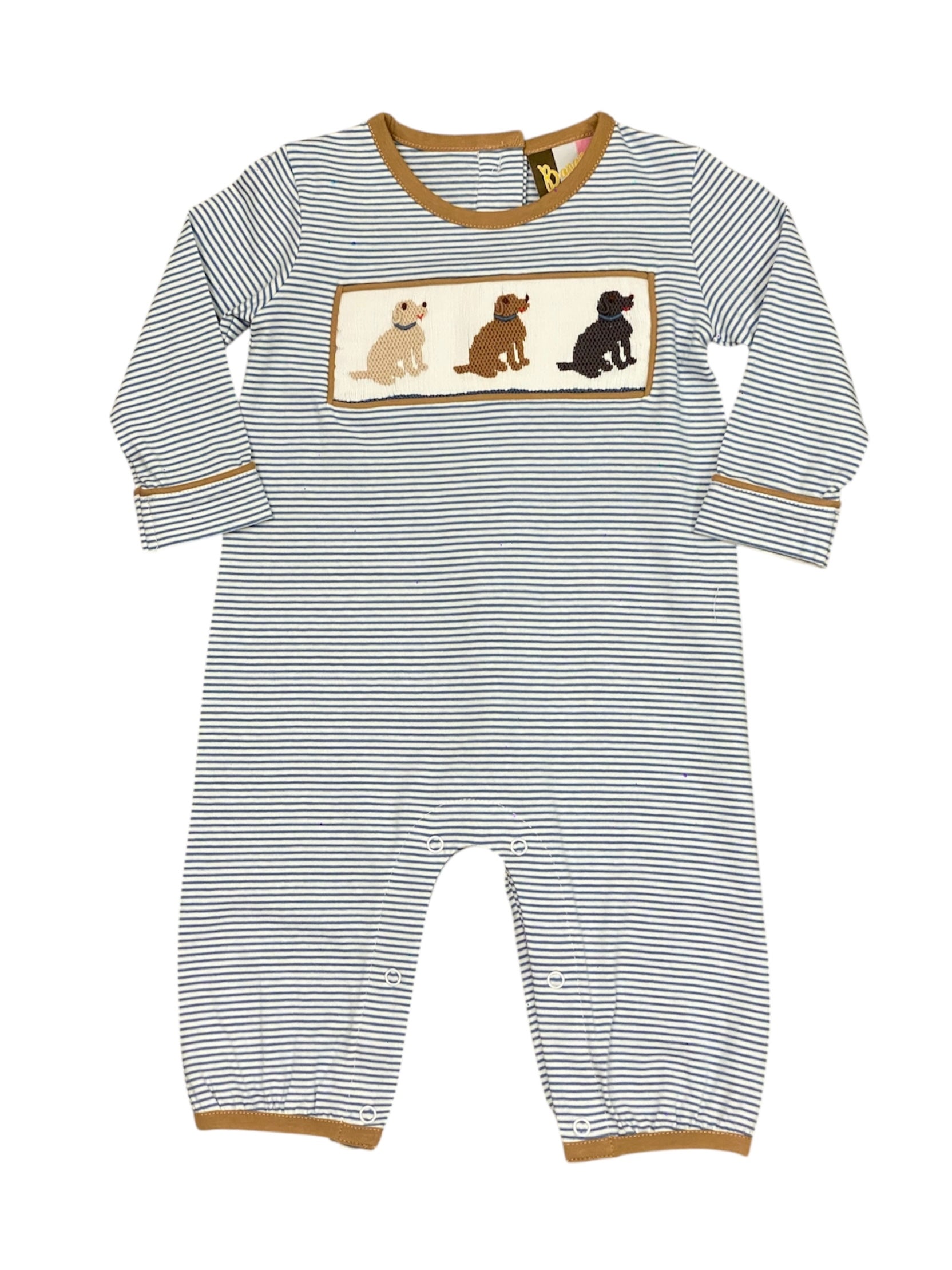 Dress your little one in the adorable 3 Dog Smocked Romper, perfect for playful days and sunny adventures. Featuring charming smocked detailing and a cute dog motif, this romper combines comfort with a touch of whimsy. Easy to wear and soft on the skin, it’s ideal for keeping your child happy and stylish all day long.