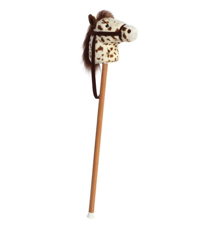 Aurora has a variety of interactive plush toys that elevate playtime and make-believe to the next level! Ride alongside your next favorite partner, this Giddy Up Stick Scot Brown Pinto Horse! Attached to a wooden stick, this pinto horse is white with brown patches spotted throughout. Adding to the realism and fun of this toy, this plush pony can play “gallop” and “neigh” noises.