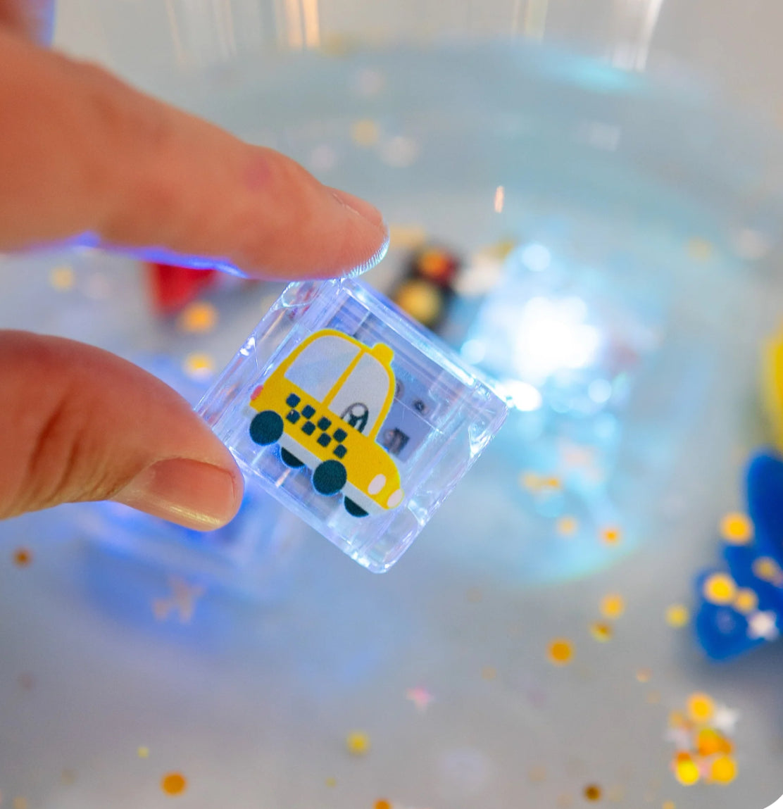 Beep beep beep! Lots of fun coming through! Our new Auto Light-Up Cubes are rolling in with bold glowing colors and some wheely cool designs. Just add water and watch them glow. Perfect for sensory bins, birthday parties, and more!
