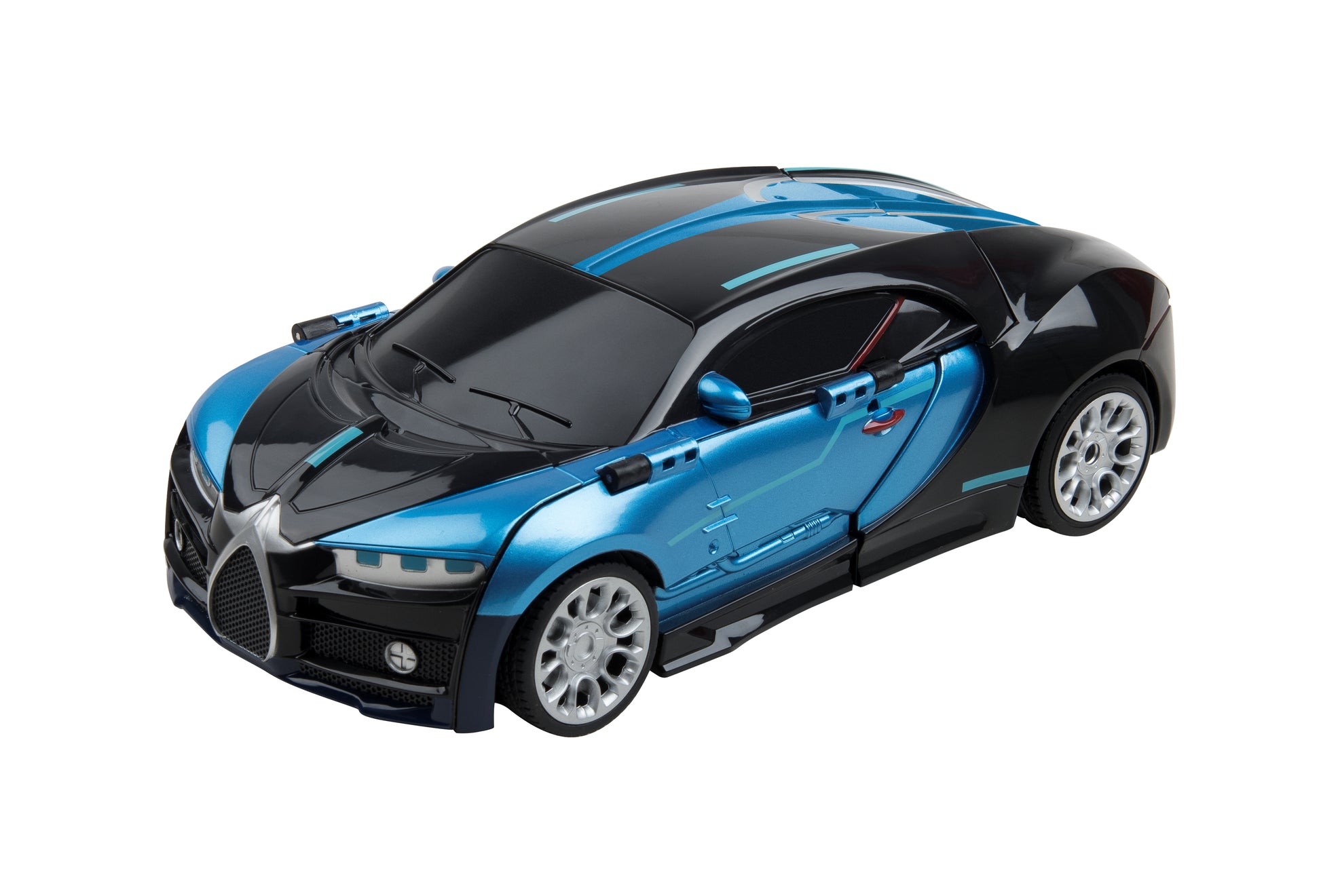 Let’s face it—a toy robot is pretty cool. But one that can transform into a sporty race car at the simple push of a button is even cooler. Add a second robot to battle with a friend, and you’ve got the hottest toy on the block. Hit the heart at the center of your opponent three times, and the loser will instantly transform back into car form. Model #ODY-1054 Features: • Transformable from car to robot! • Two-Player action. • Battle your opponent: Punch their strike zone and win the game. RC frequency: 2.4 Ghz Age rating 8+ Contents: • 2x Battling robots • 2x Remote controls • 2x Lithium-ion batteries • 2x Battery chargers • User manual Batteries: • 4x AA batteries required (Not included)
