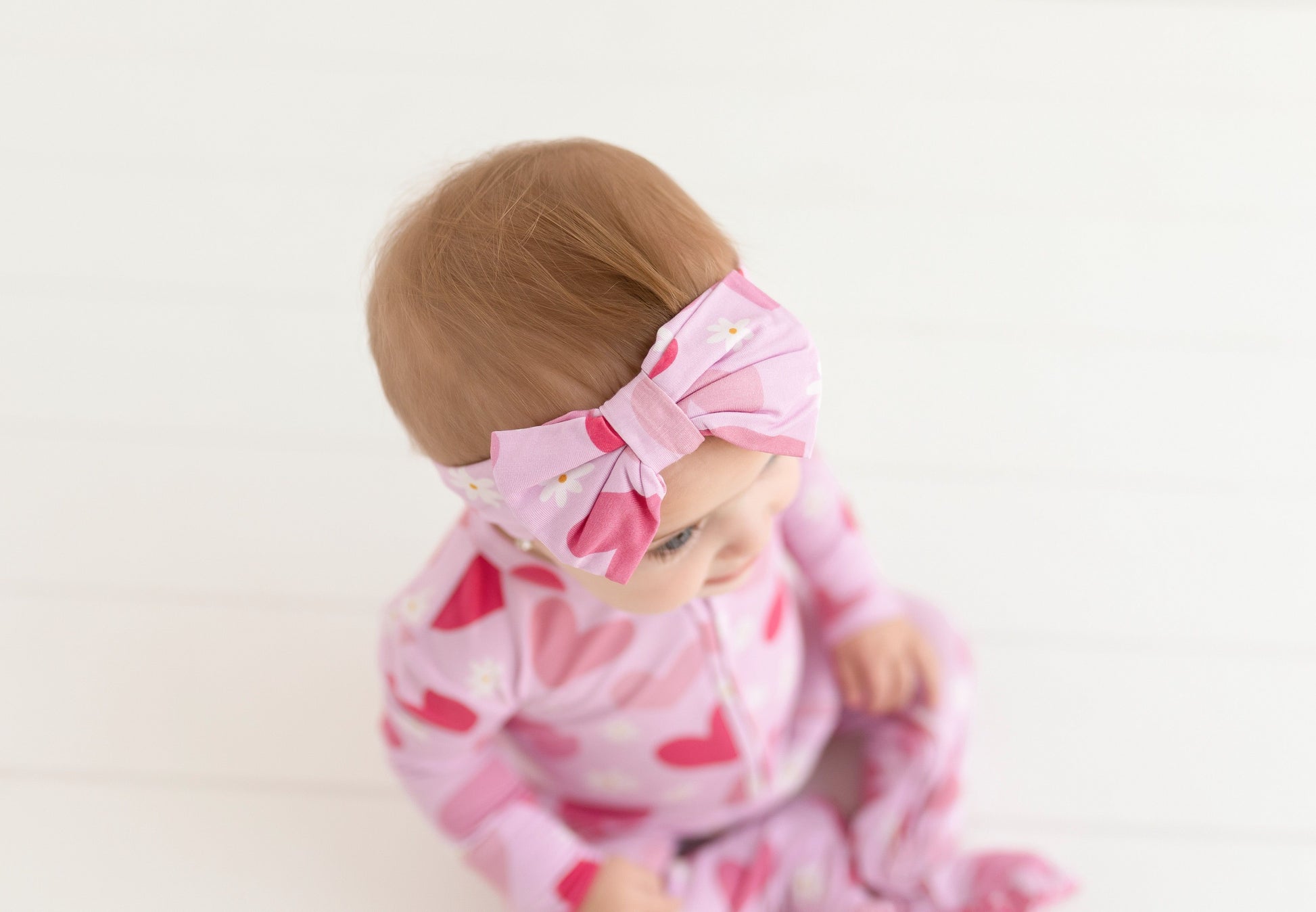 The Posh Peanut Daisy Love Luxe Headband is an elegant and adorable accessory adorned with charming daisy motifs, adding a touch of sophistication to any little one's attire.