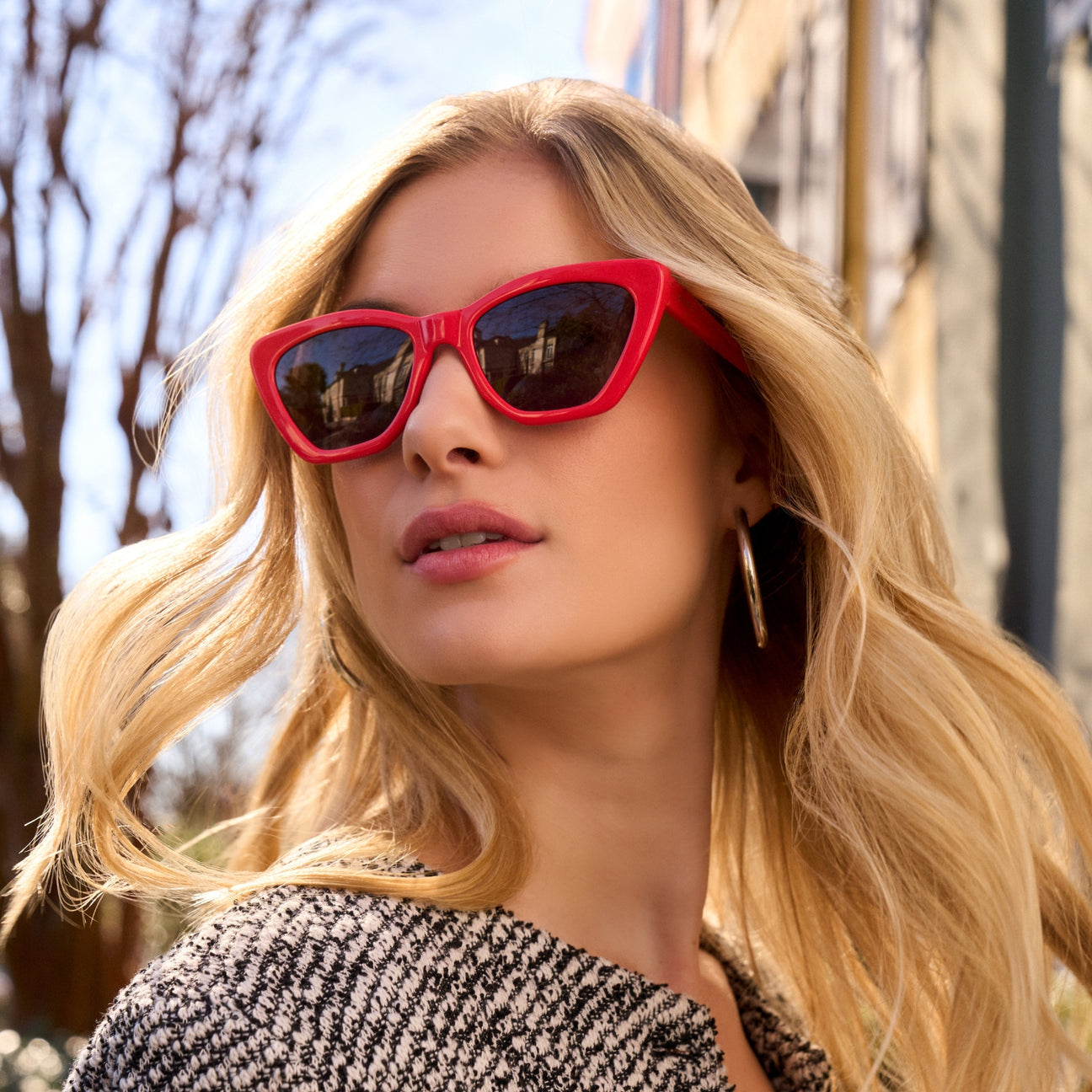 Go bold with the translucent Camila. These sunglasses feature an exaggerated cat-eye frame and nose pads for all-day comfort.