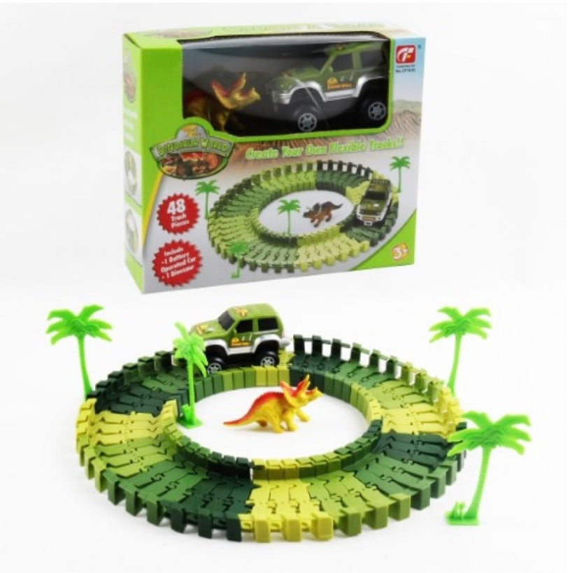 Includes: 48 track pieces, 1 battery operated car & 1 dinosaur
