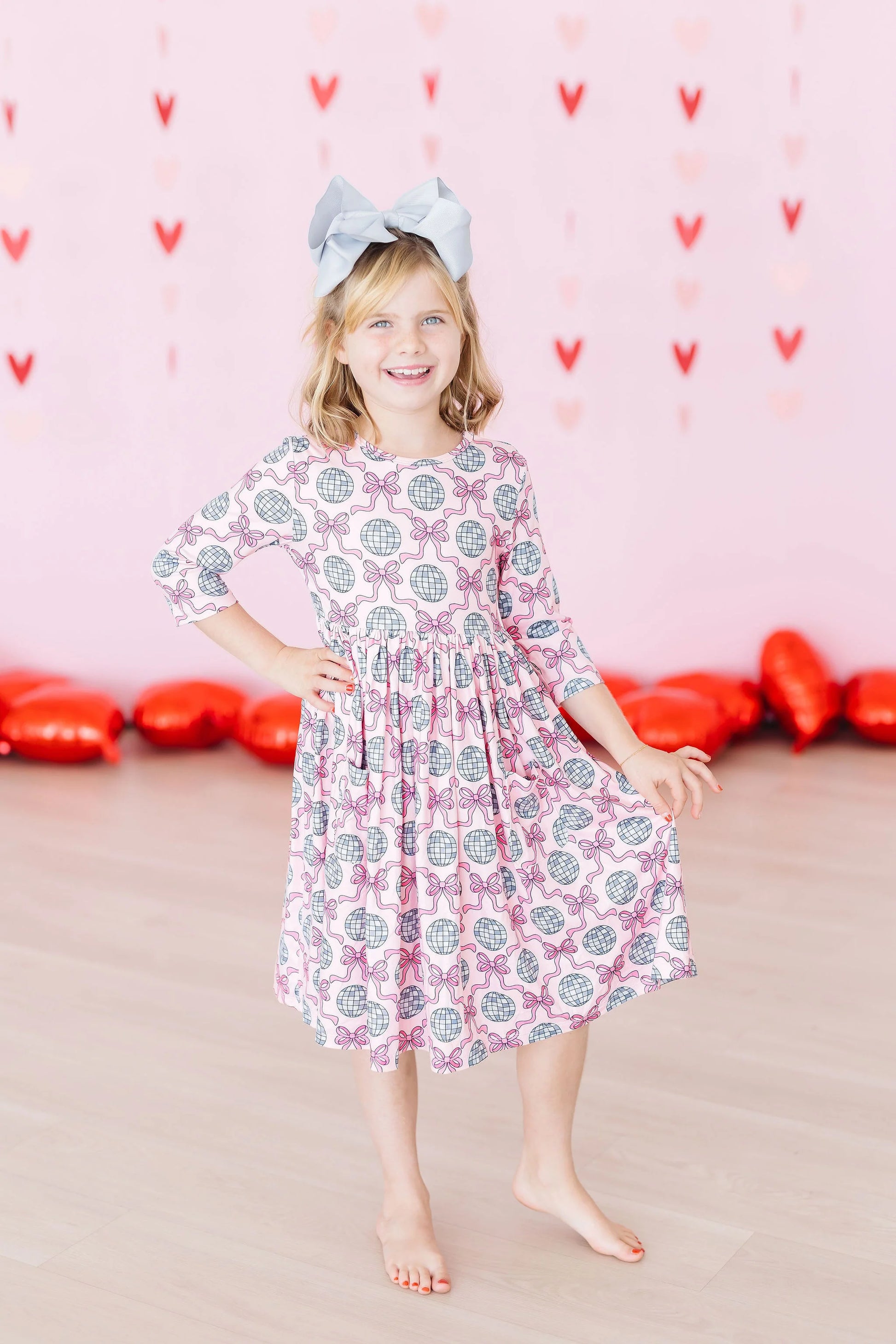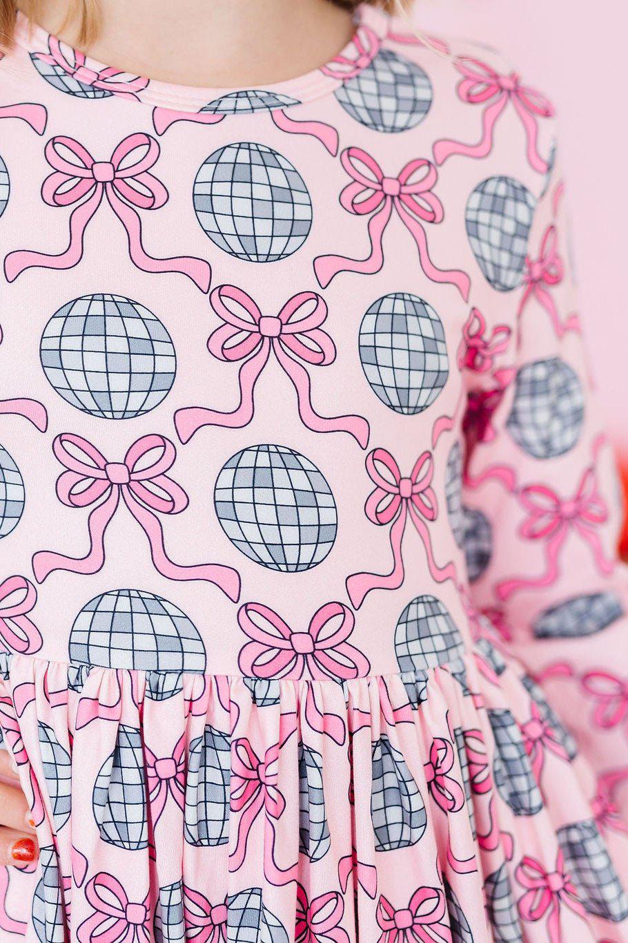 Get ready to dance the night away with the Disco Bows Twirl Dress. Its playful design and twirly skirt will bring joy and fun to any occasion. Perfect for a night out with friends or a special event. Dance and twirl with style in this dress!