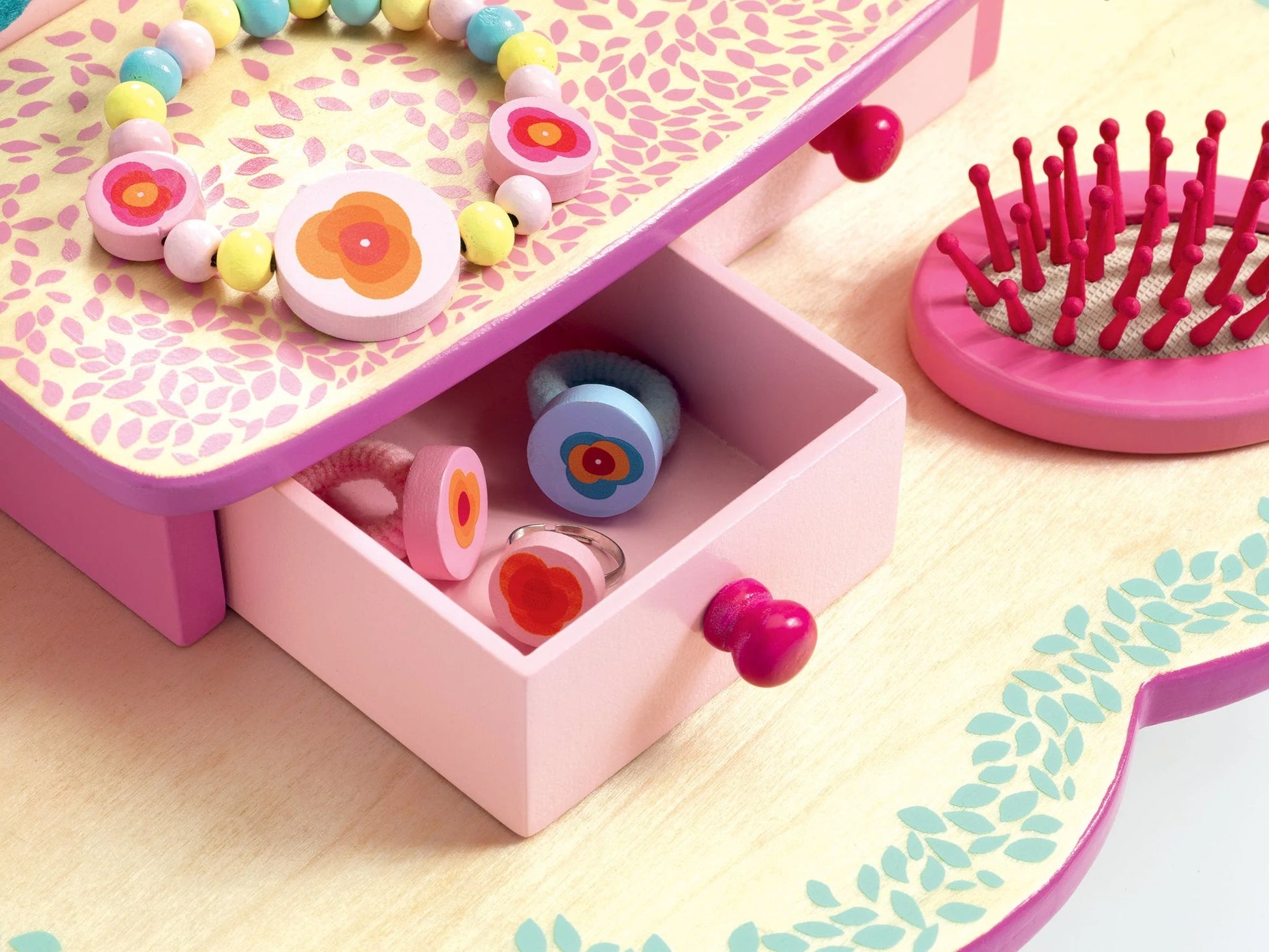Includes a hairbrush, water-based nail polish, pink lipstick, 2 hair elastics, a multi-color bracelet, and a ring, all in beautiful shades of pink. Helps develop imagination, role-playing, storytelling, and a sense of make-believe.