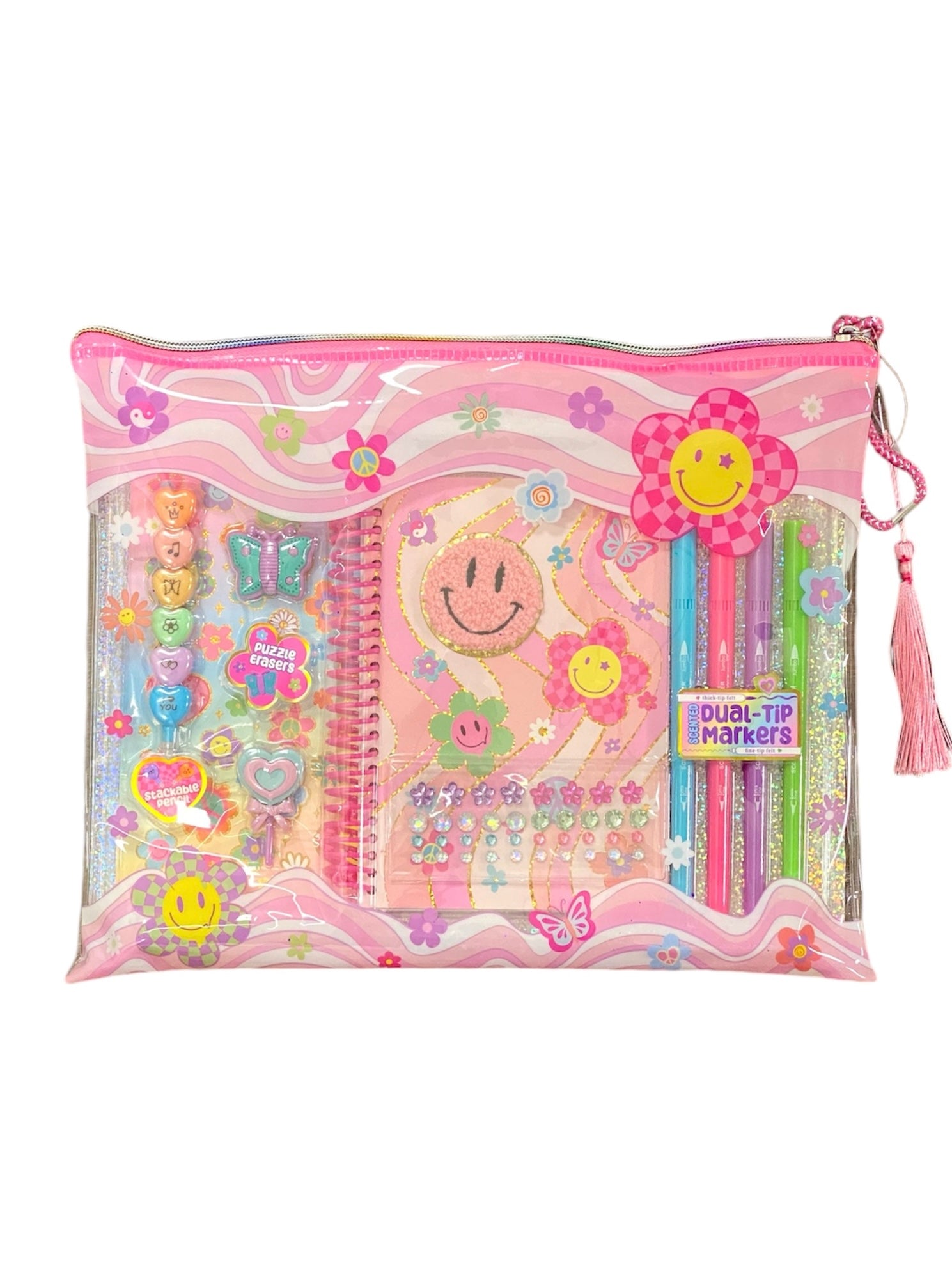 Get your creativity blooming with Fun Sketching Vibes! This groovy flower-themed set includes a reusable bag, sketchbook, vibrant stickers, erasers, and 4 scented dual tip markers. Perfect for artists of all ages, let your imagination run wild and spread good vibes everywhere you go. (Flower power never looked so good!) 🌸