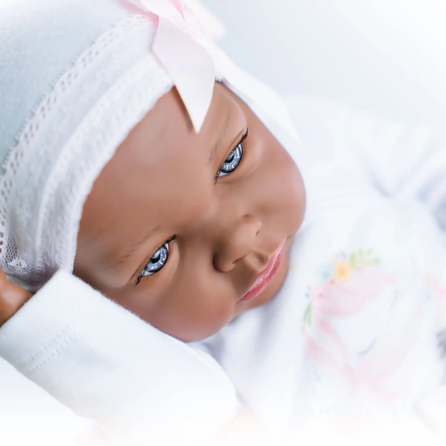 Soft-bodied wrist and high quality vinyl limbs. Articulated body to adopt the position of a baby.
