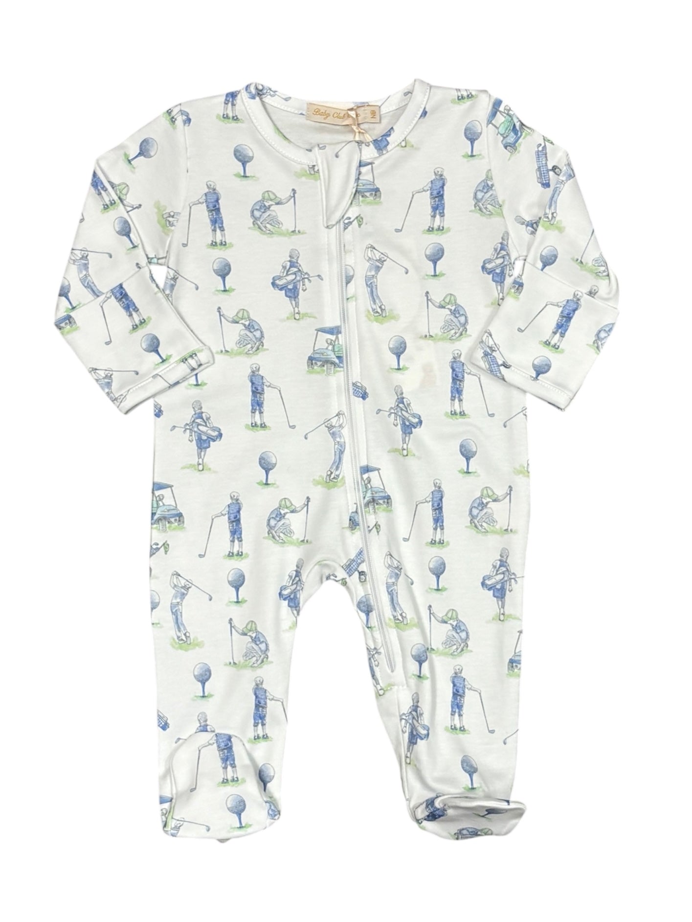 Perfect for little athletes who love the game, this cozy footie combines comfort with sporty style. Featuring a classic golf-inspired design and convenient zip closure, it's ideal for layering on cool days or wearing solo during playtime. Soft, durable fabric keeps kids comfortable whether they're practicing their swing or just hanging out. A fun addition to any active child's wardrobe.