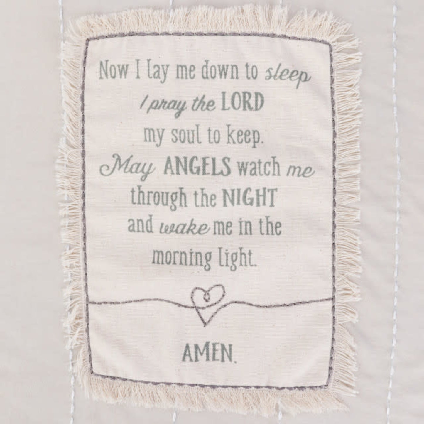 The cute Goodnight Prayer Blanket is perfect for cuddling up at bedtime. This classic long rectangular blanket is designed with super soft materials that are perfect for cuddling or swaddling. Muted colors throughout and a cute sewn-in patch depicting a goodnight prayer add a cozy feel to this plush blankie. This line will take bedtime to a whole new level of fun and easy with playful and cozy designs that help with a child's nighttime routine and encourage little ones to get to sleep.