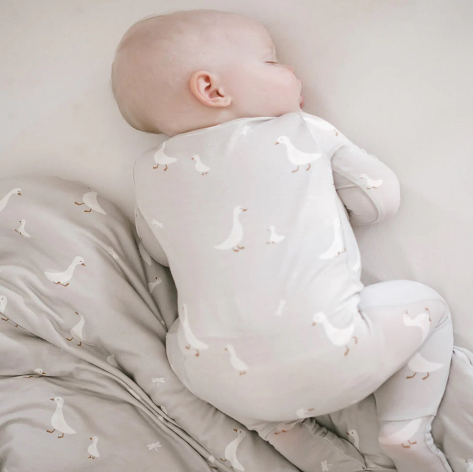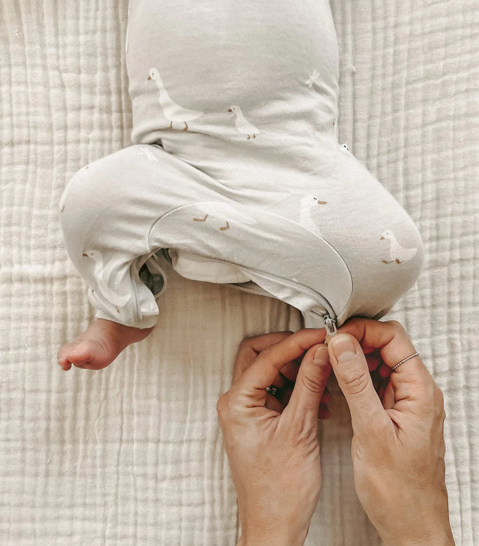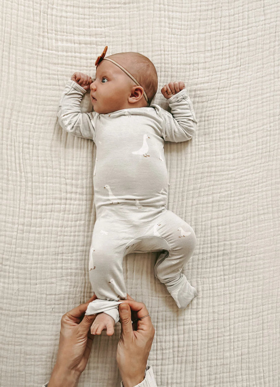 Say goodbye to fussy clothing changes with our Goose Convertible Footie! This versatile piece can easily convert from a footie to a gown, providing comfort and convenience for both you and your little one. No more struggling with multiple outfits, just zip and go!