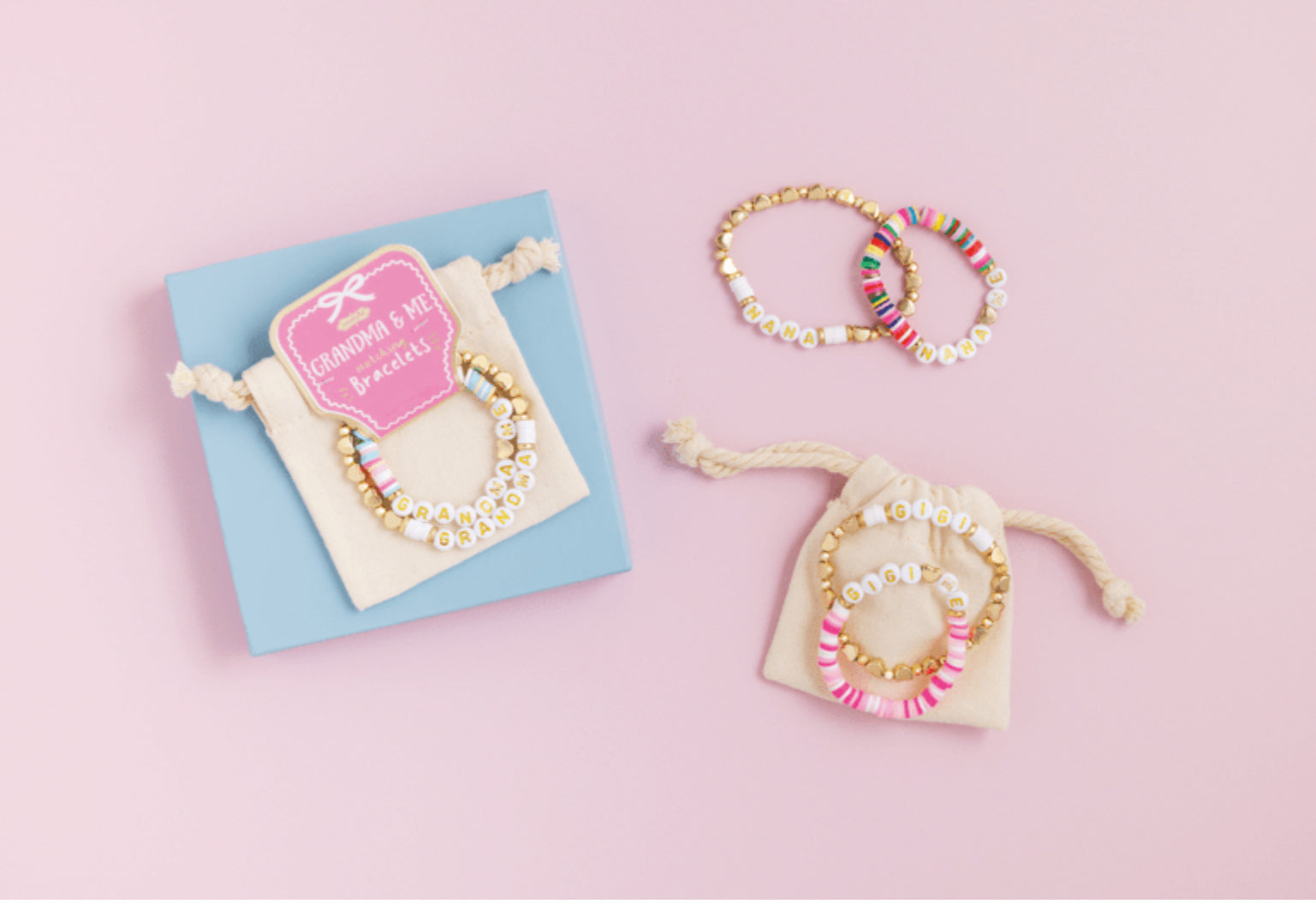 Celebrate the special bond between generations with this charming Grandma And Me Bracelet Set. This delightful 3-piece set features coordinating stretch bead bracelets, perfectly designed for both grandma and granddaughter to wear and cherish. Each bracelet is crafted with care, ensuring a comfortable fit with its flexible stretch design. The set includes a small bracelet with a 5 1/2" diameter for the little one and a large bracelet with a 7" diameter for grandma, making it a perfect match for both. Made from durable plastic beads, these bracelets are lightweight and easy to wear, adding a touch of elegance to any outfit. The set comes beautifully packaged in a canvas drawstring pouch, making it an ideal gift for birthdays, holidays, or just because. Share the joy and connection with this lovely bracelet set that symbolizes love and togetherness.
