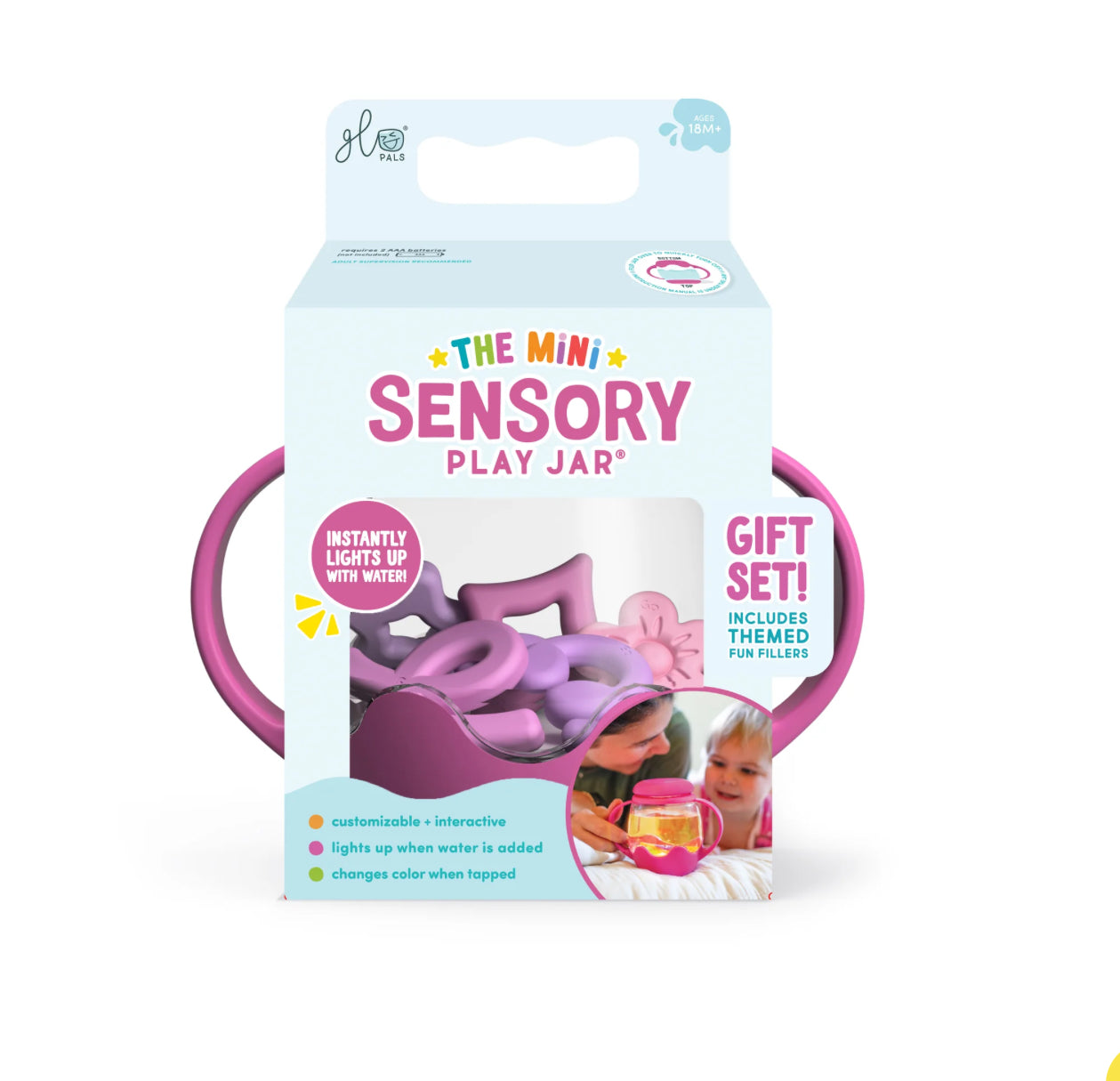 Our fan-favorite Sensory Play Jar®, now MINI and bundled for even more glowing fun! Each Mini Sensory Play Jar® Gift Set comes with 5 soft-touch silicone shapes, perfectly sized for little hands and designed to inspire, swirling, shaking and sensory discovery right out of the box.