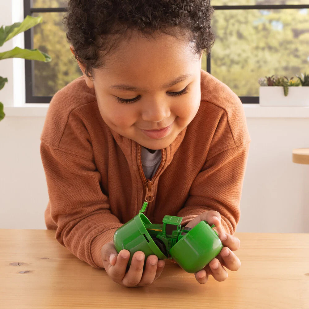 Discover the excitement of John Deere Pullback vehicles with this assortment capsule toy. Featuring four styles chosen at random, each vehicle is packed in a blind capsule, adding an element of surprise. Keep an eye out for the rare muddy versions! Suitable for children aged 3 and up, this toy is perfect for young tractor enthusiasts.