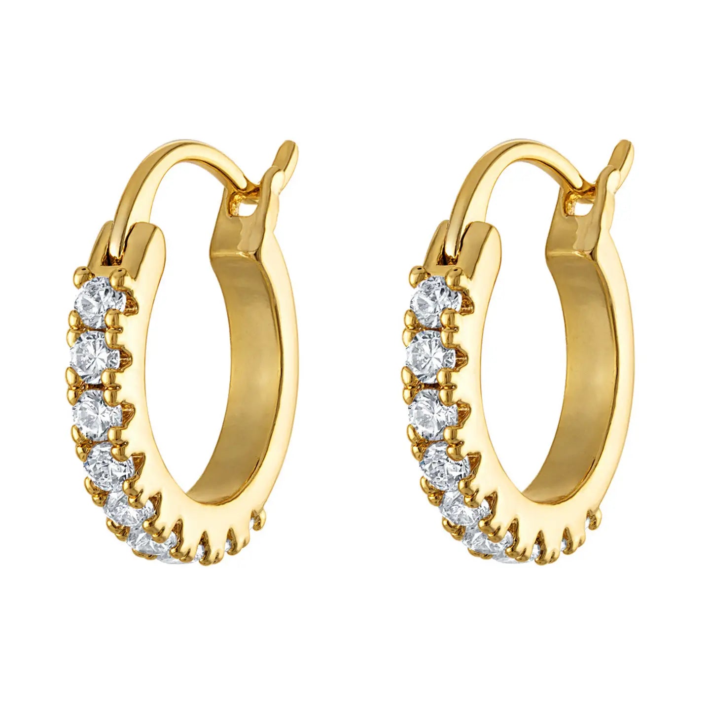 Minimal yet radiant, our Lane Hoop Mini is a staple that you never miss. Crafted elegantly, these hoops are a fusion of golden glam with a timeless twist. These earrings feature hoops exhibiting a row of radiant CZ stones in a prong setting. The snug, circular silhouette hugs your ear, delivering an elevated look. Stack these hoops with our Bridget Stud Earrings to bring the right amount of shimmer or leave them to shine alone. Perfect for birthdays, bridesmaids, or a pick-me-up for yourself, our Lane Hoop Mini is an ideal gift to add a touch of elegance.