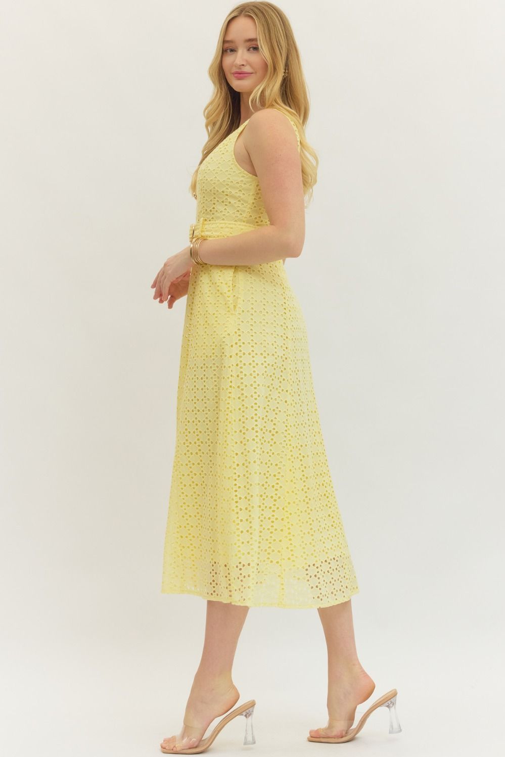 Lemon Belted Midi Dress