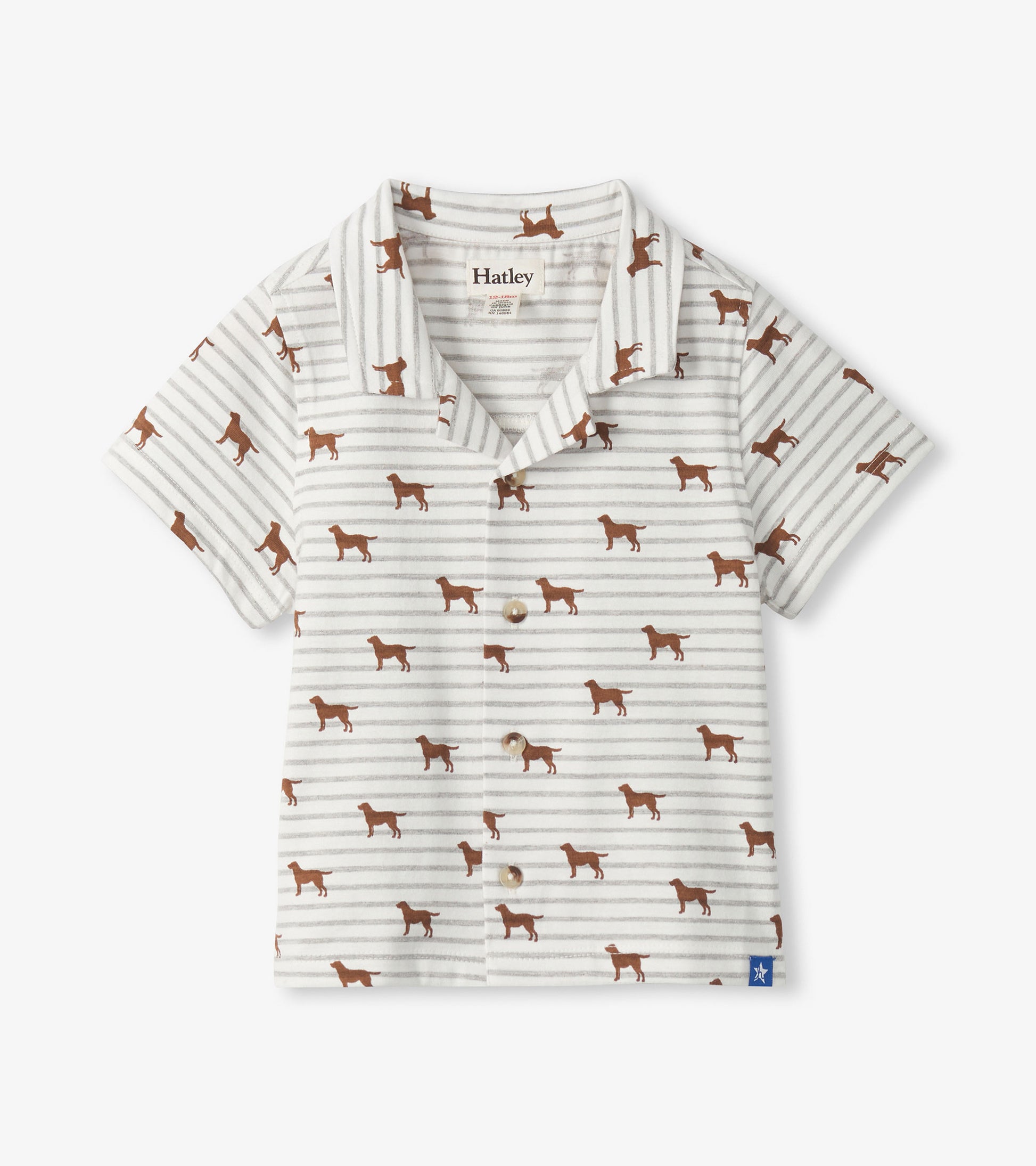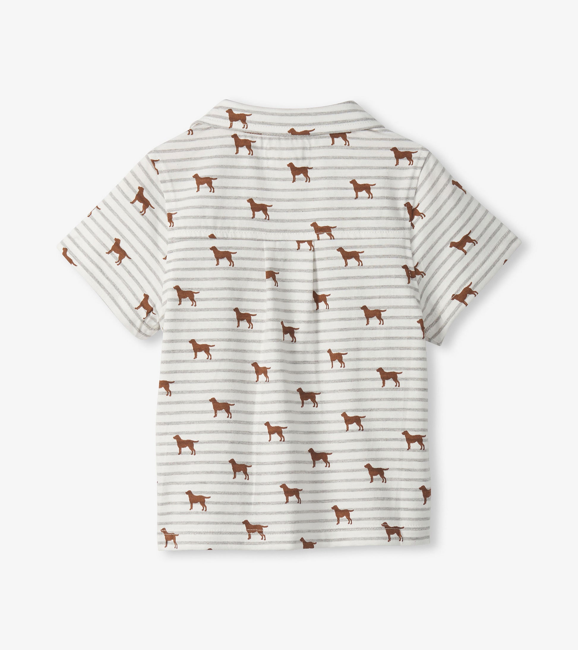 Little Pups Jersey Button Down Your boy will love the laid-back cool of this jersey button-down! Soft, breathable fabric keeps him comfy all day long, whether he's playing at the park or hanging out with friends. The fun pup-inspired design adds personality to his everyday wardrobe. Easy to care for and built to handle active adventures, this shirt is a go-to piece that pairs with everything.