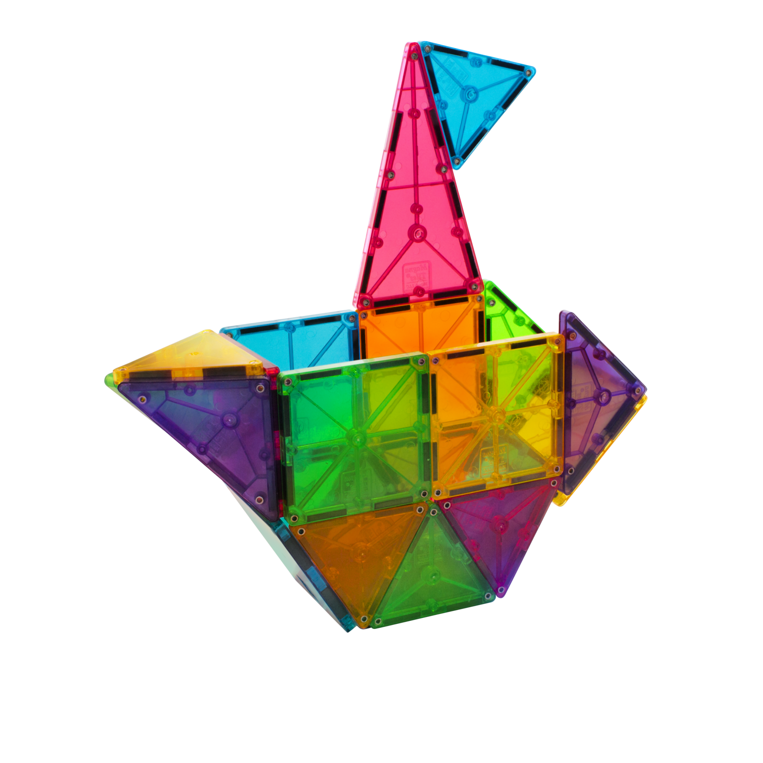 Get ready for an en-tile-ly original building experience and a toy that will be enjoyed by your family for many years to come. With the Classic 32-Piece Set, children can click, connect, stack, and sort classic geometric shapes in bright, vivid colors for hours of screen-free fun. These high-quality magnetic tiles are just the right size and magnet strength for little hands. Learn shapes, colors, matching, and basic building skills by including magnetic tiles in your activities and experiments.