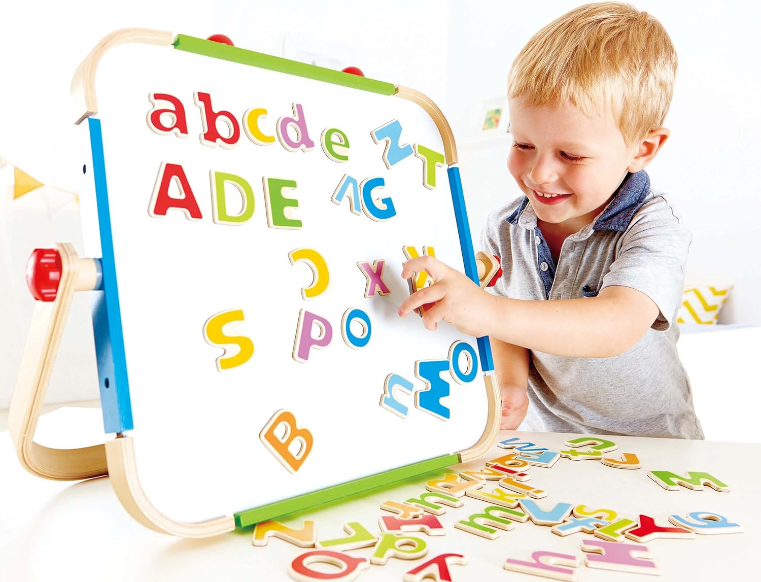 This pack contains 52 magnetic letters that can help your child learn the alphabet and its upper and lowercase letters. If you're just starting to introduce letters to your child, you can play a match-up game where you ask them to match the uppercase letters with the lowercase ones. You can also teach them alphabet songs to help build their confidence in identifying letters.