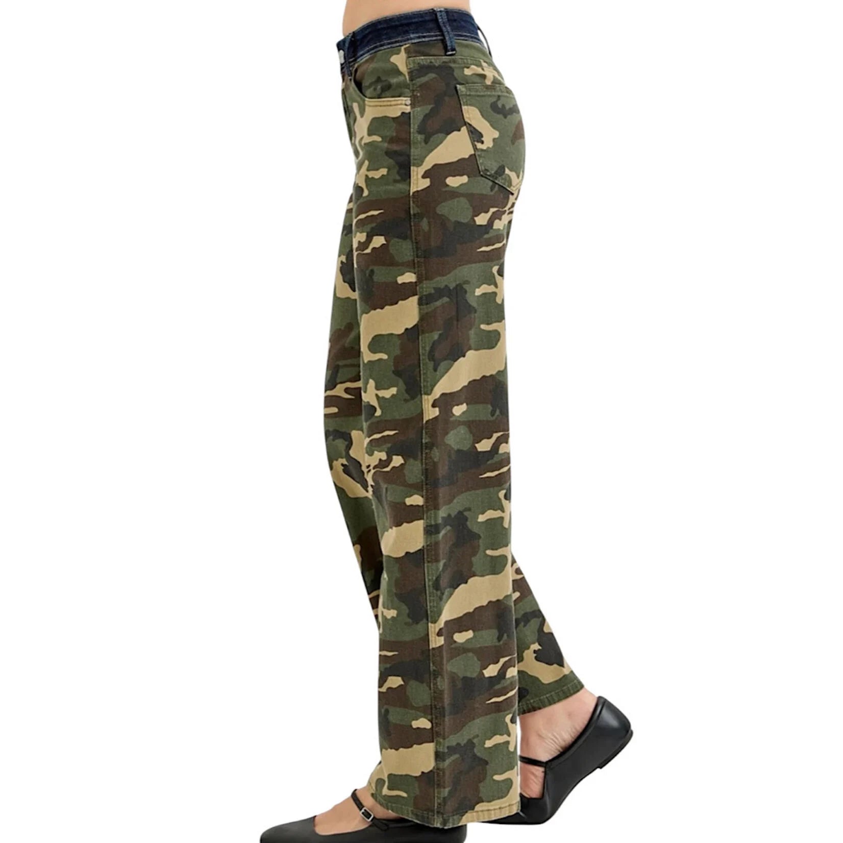 Mid Rise Fit Straight Wide In Camo
