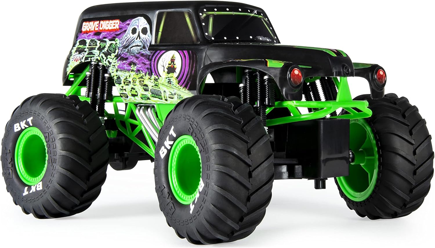 Take control of one of the most decorated Monster Jam trucks of all time! Introducing the all-new, official Monster Jam 1:15 scale Grave Digger RC! Drive this heavy-duty monster truck to the limit and perform epic stunts, crazy crashes and brutal bashes! Featuring 2.4 GHz, you can race up to 6 Monster Jam trucks with your friends and host your very own Monster Jam rally! And with a longer range, this USB-rechargeable truck will turn your world into a Monster Jam arena! This 1:15 scale Grave Digger RC is ready to run right out of the box and comes complete with batteries for the controller! Just flick the power switch and go! Use the convertible packaging to build a monster-sized ramp and launch right into the high-flying action! With a more detailed body featuring authentic BKT Tires and a look-alike chassis, this replica Grave Digger can handle almost anything you throw at it! The all-new Grave Digger RC is like driving the real thing! Perform high-octane stunts like big air, donuts, cyclones and more! You’ve never been closer to the action than with the all-new 1:15 scale Grave Digger RC!