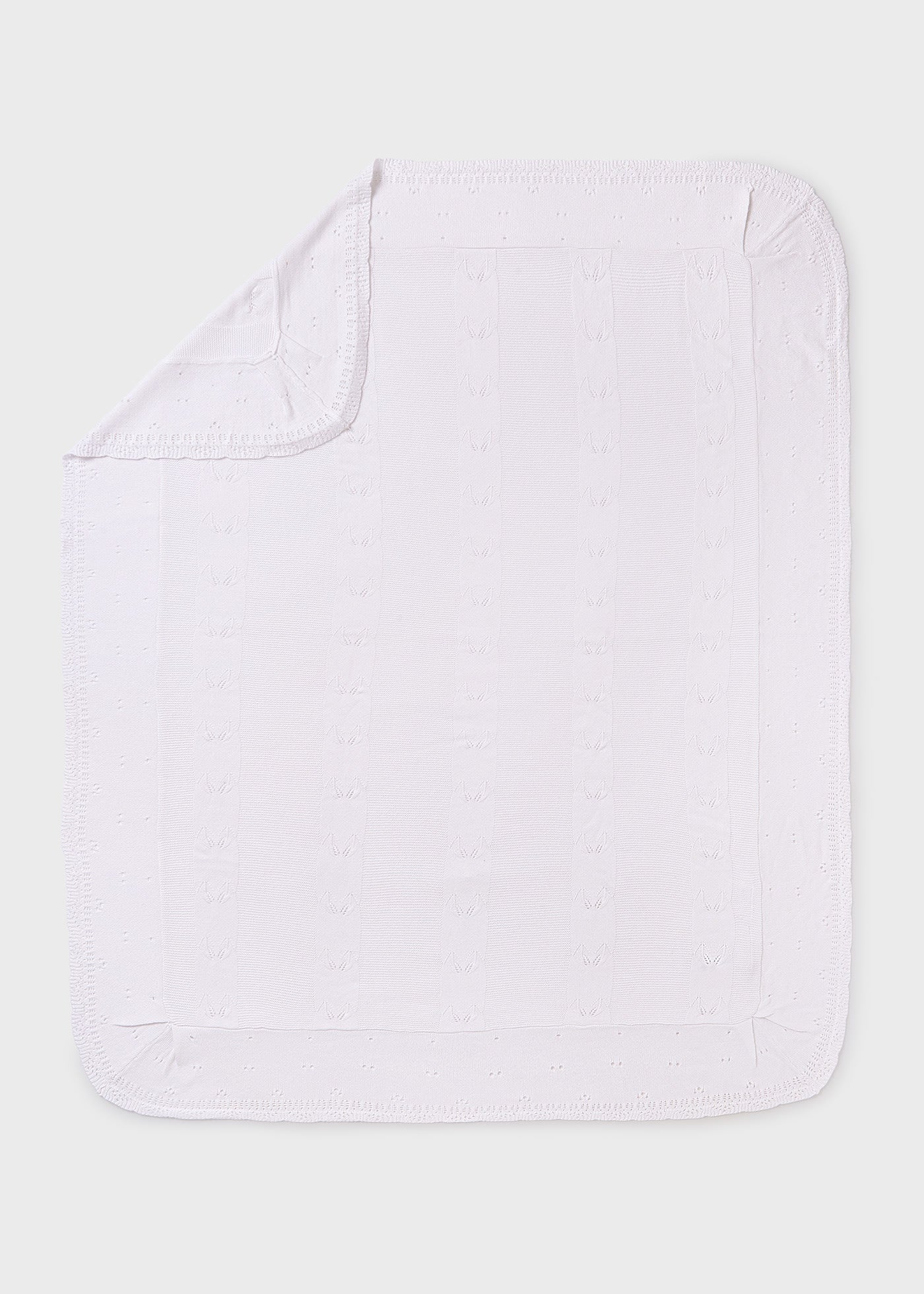 Newborn blanket with a soft knitted wrap-around design that offers comfort to the baby in their moments of rest.