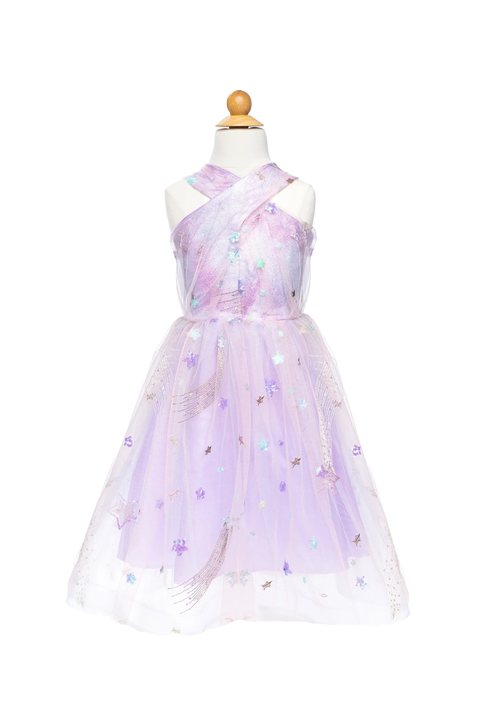 Introducing The Eras Dress – a celestial masterpiece for your little star! This enchanting lilac dress is a nod to Taylor Swift's iconic eras, capturing the magic of childhood in a swirl of dreams and stardust. Adorned with a constellation of stars, this dress adds a touch of celestial charm to any occasion. The lilac hue brings a soft and elegant touch, while the cross-strap top adds a playful and stylish element. The Eras Dress invites your child to twirl and dance under the imagined night sky. Whether it's a playdate, a living room concert for the family, or a special celebration, this dress is the perfect choice for moments of joy and whimsy. Let your little one shine bright and embrace the magic of each era with this celestial-inspired lilac dress. The Eras Dress is more than just an dress; it's a celebration of childhood dreams and the enchantment of growing up. It is an everyday reminder to reach for the stars!