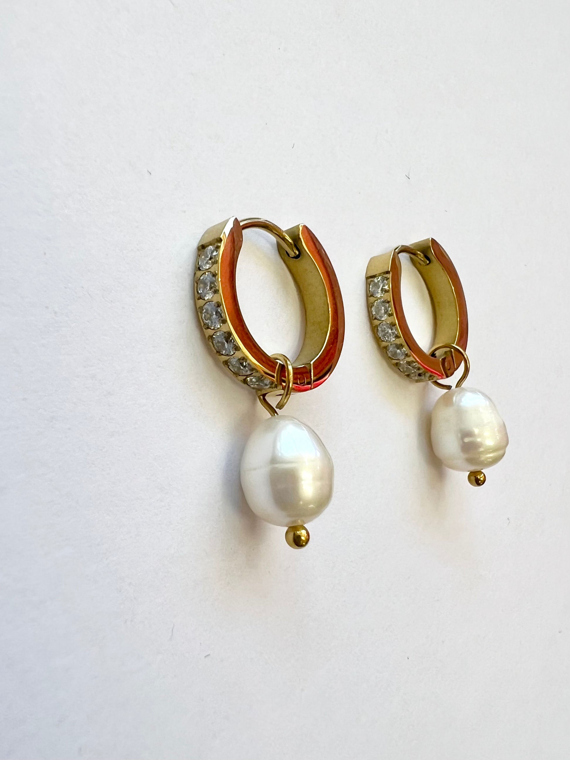 Have a "pearl"fect day with our Pearl Drop Huggies! These huggie earrings feature a non-tarnish, hypoallergenic design, with CZ inlay and a charming pearl drop in gold. No need to worry about irritation or discoloration, just enjoy the elegant and timeless look of these huggies.