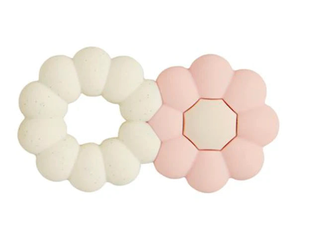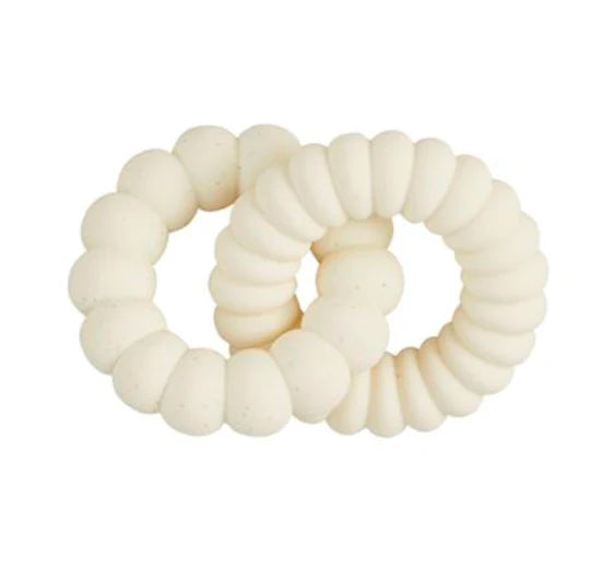 Food grade, BPA-free silicone and beechwood teether comes in drawstring gift bag. Cotton rope display basket. Teether is custom molded in one piece to provide safety with no choking hazard. Ages up to 18M.