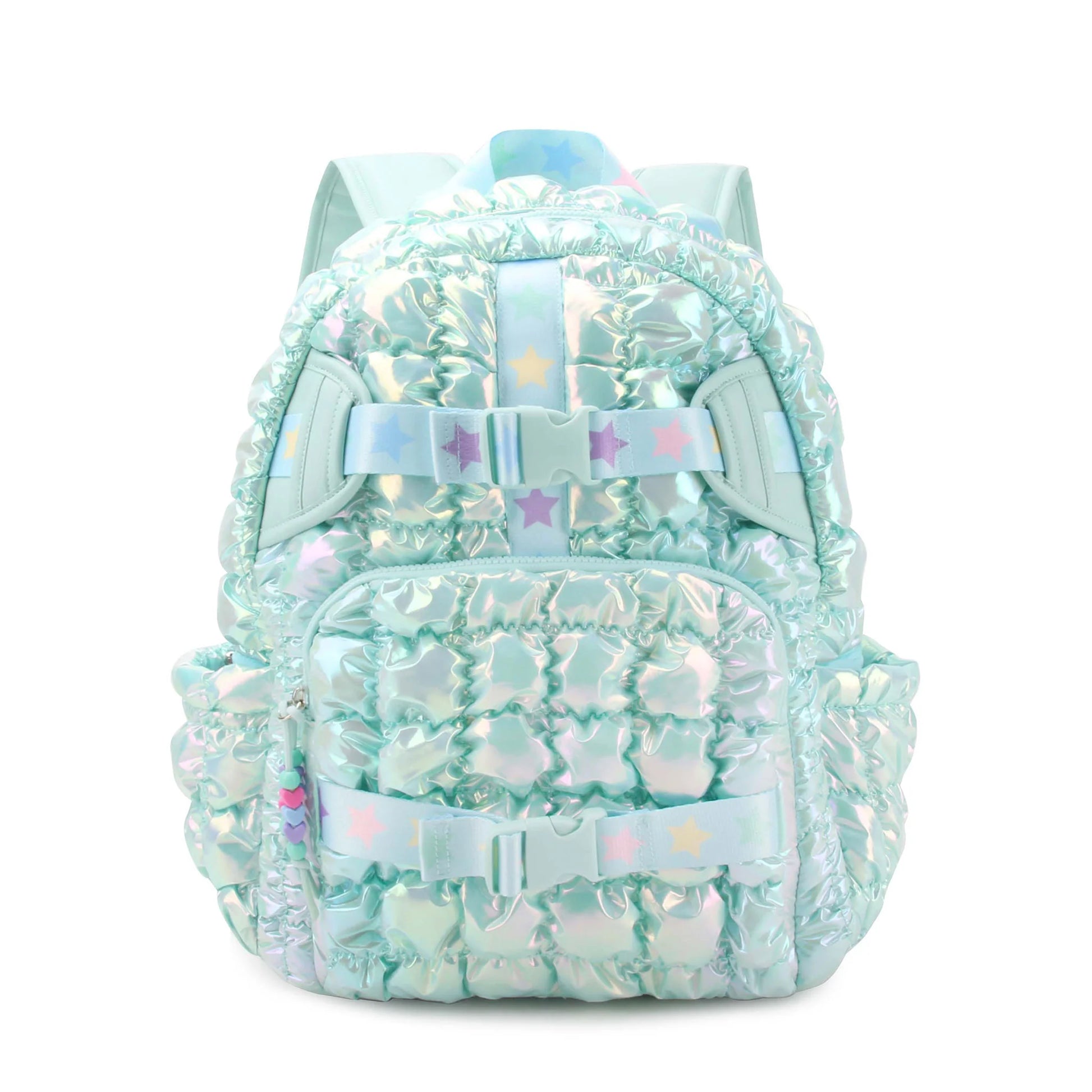 Add a splash of sparkle to your school days with this Quilted Scrunchies Metallic Backpack! Featuring a fun webbed star print and a roomy design, it’s perfect for carrying all your essentials in style. The quilted texture adds a cozy touch, while the metallic finish catches the light for extra shine. Durable and spacious, this backpack makes every day feel a little more magical and a lot more fun!