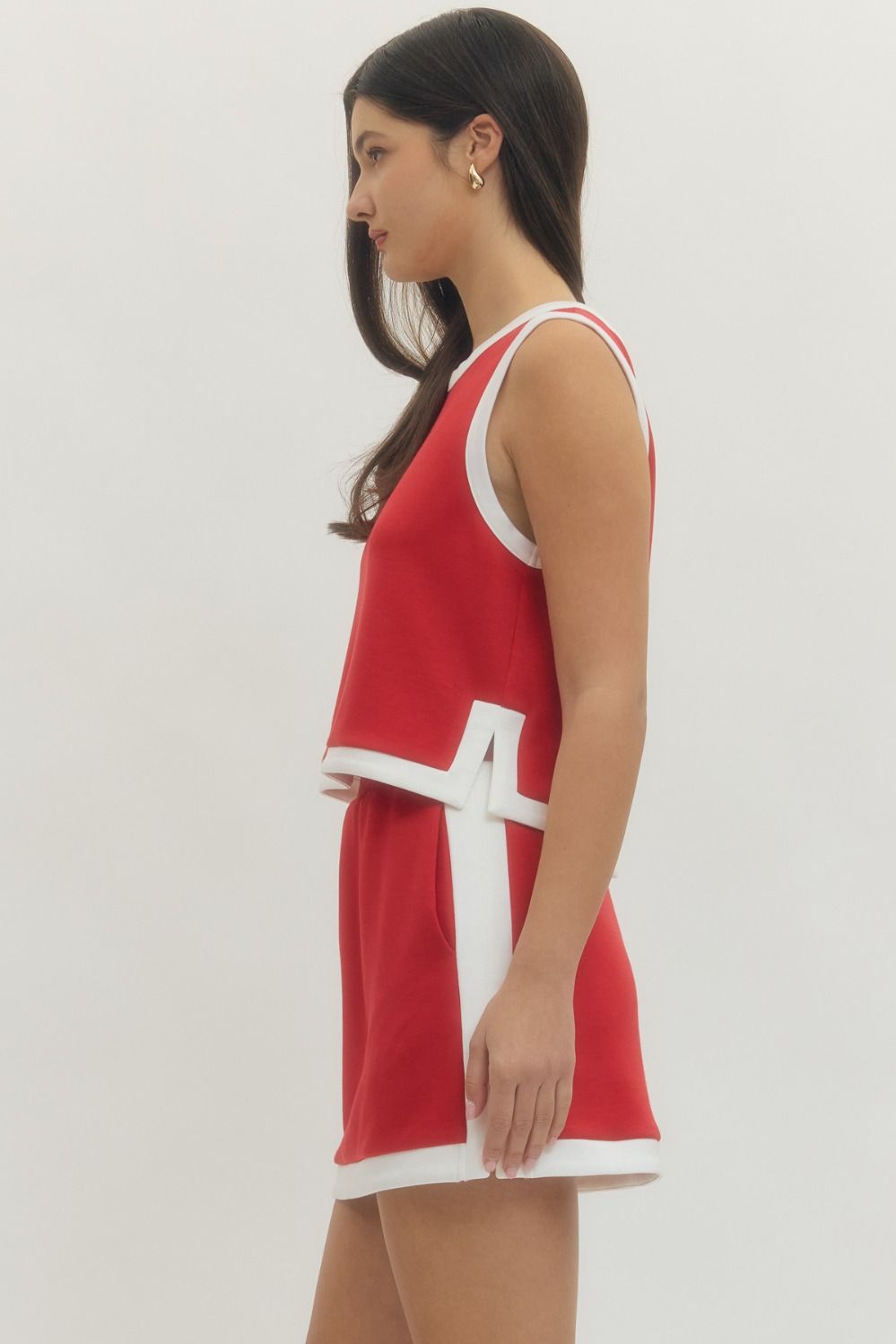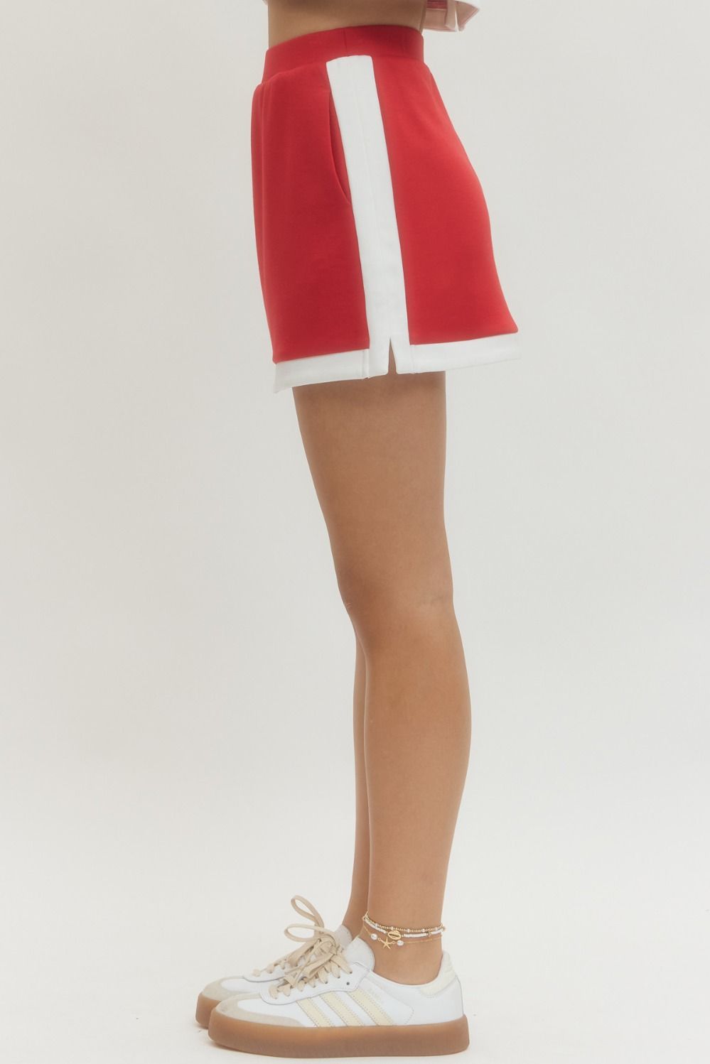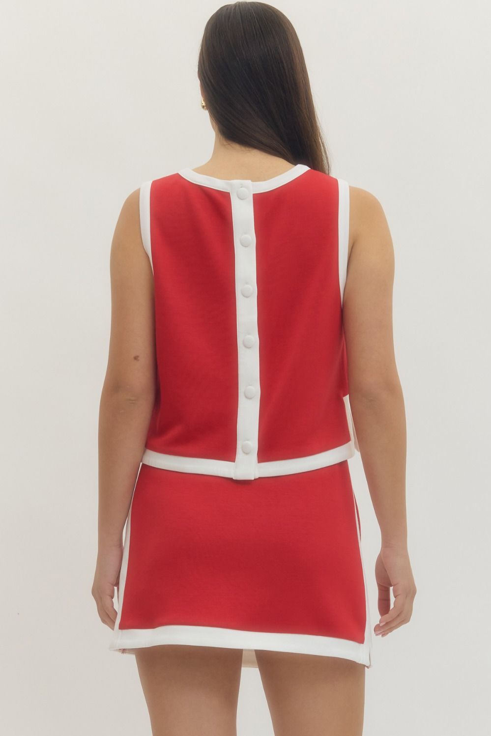 Red And White Skirt Set