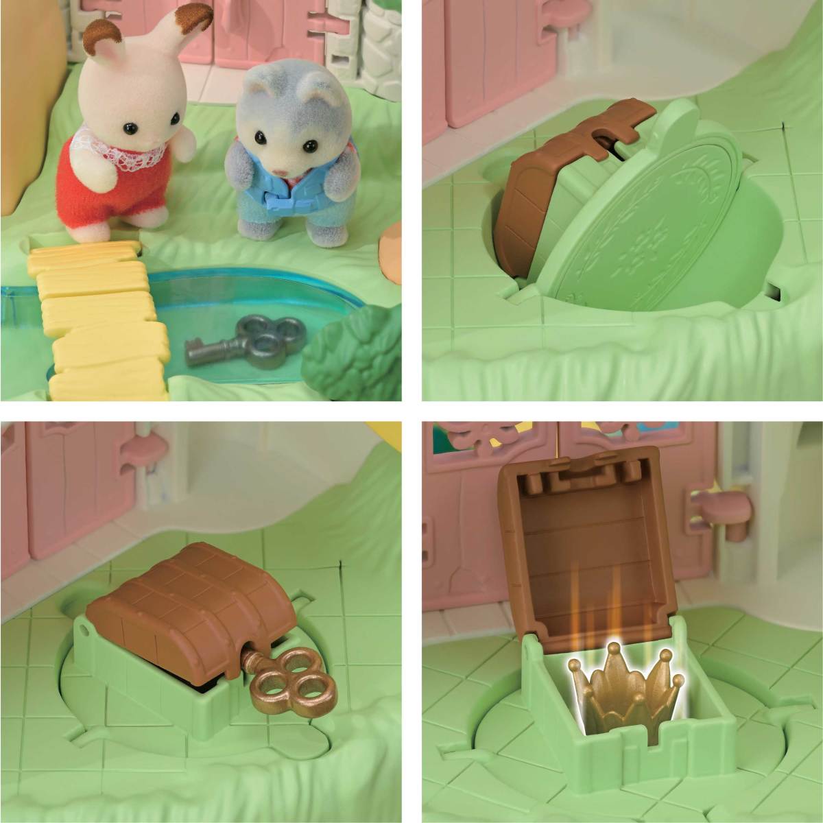 This playset features a Linnea the Husky baby, adventure gear and a Secret Forest with all kinds of fun features!The Secret Forest is full of thrilling and exciting things to see and do—a big waterfall to raft down, a castle with hidden treasure, a tree house, an adventure boat and more!Set out on an adventure to search for the treasure in the Secret Forest!Includes a Husky baby dressed for adventure! With a life jacket, lantern, flag, fishing rod, explorer's hat and more, she's ready to go!First she needs to find the key to the treasure chest! There are lots of places to search—a bucket lift, an ivy ropeway, a tree house, a big waterfall with a cave behind it, a little secret trail, a lifting bridge and more!Turn the floor of the castle and the treasure chest will appear! Open it with the key and take out the treasure inside!