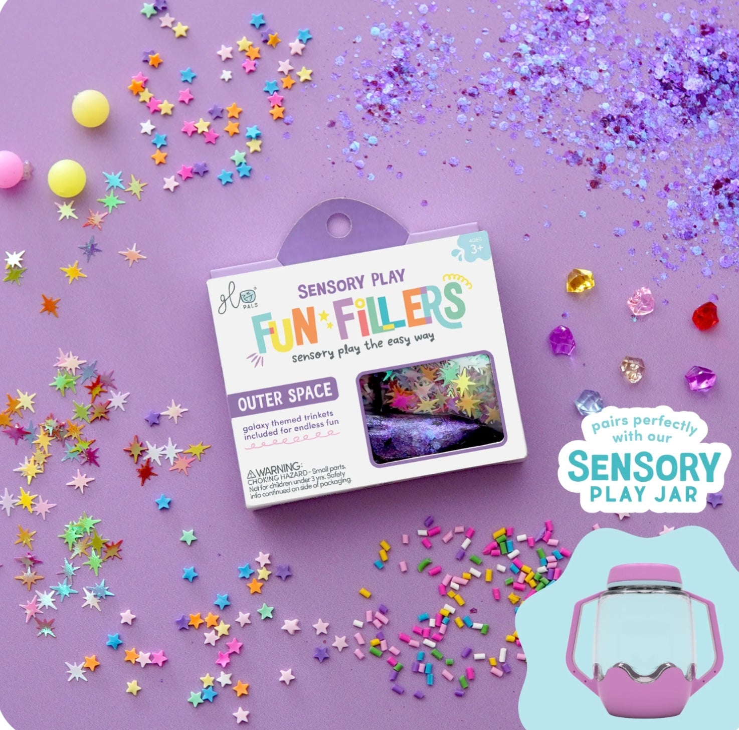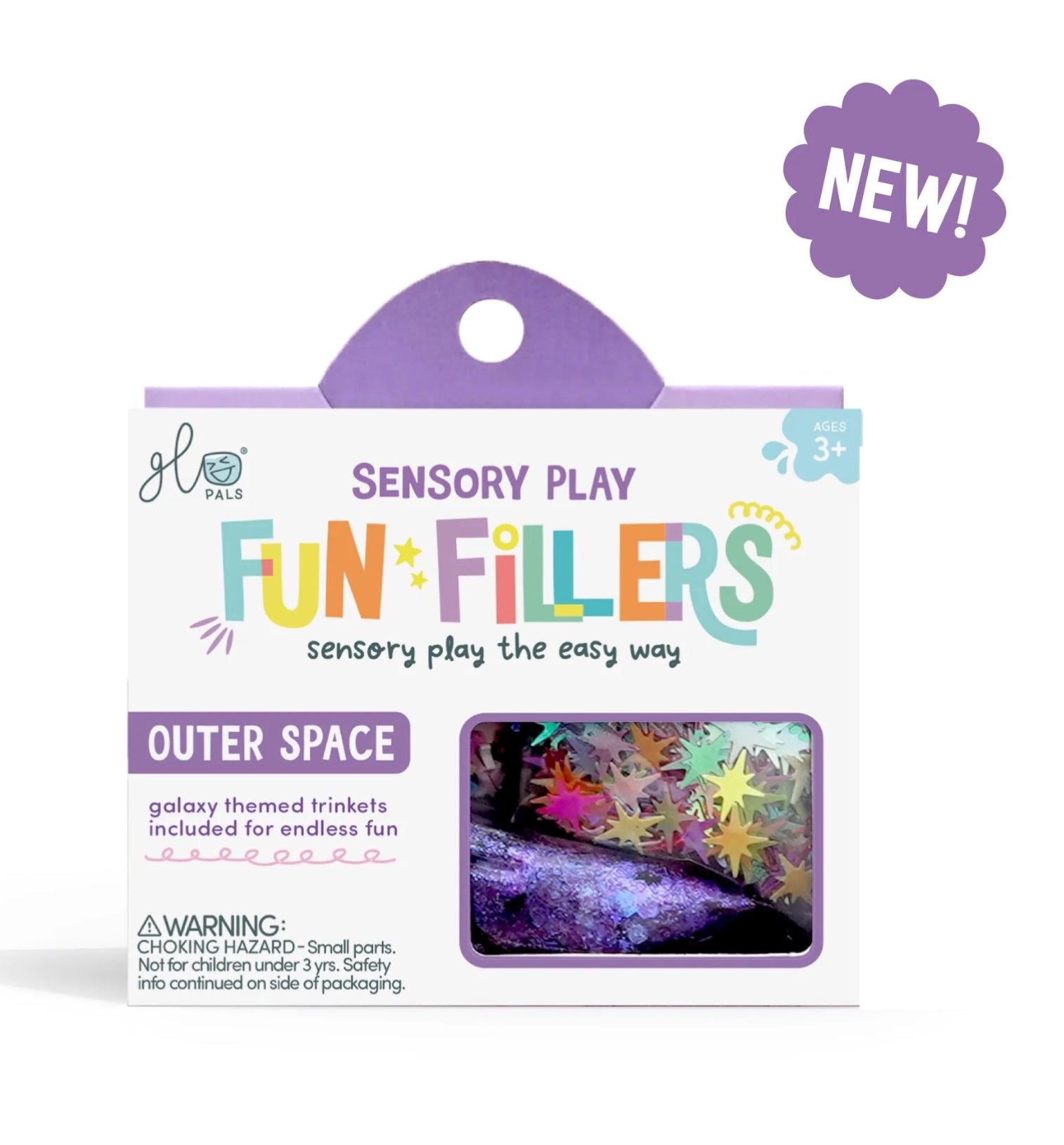 Fun Fillers take the fuss out of curating the perfect sensory play activity! Each pack includes themed sensory accessories that take playtime to the next level! These pair perfectly with our new Sensory Play Jar - or you can use them to enhance your favorite sensory bin. Perfect for water, rice, slime, play-dough and more, Pals!