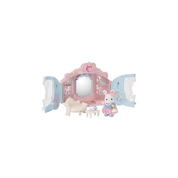 The Style & Sparkle Dressing Room comes with a beautiful, sparkly carriage, accessories and the Snow Rabbit girl dressed like a princess.The double doors of the carriage open to transform into a stylish room with lots of beautiful accessories and shelves to put them on.Comes with lots of accessories so you can enjoy creating various looks.The carriage has a handle so you can use it as a carry case for the figure and accessories.