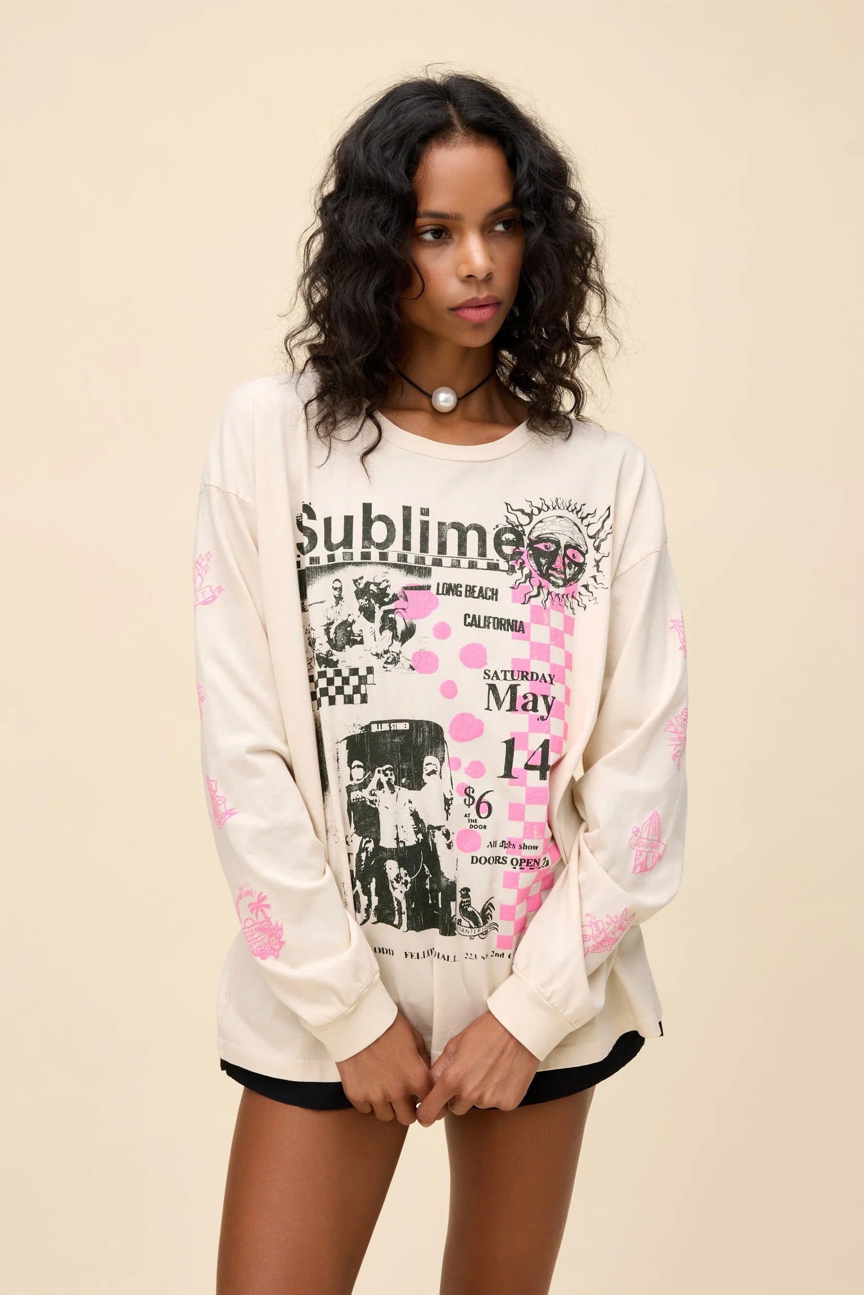 Using the Long Beach crew's most recognizable lyrics and iconography reflective of a laid-back SoCal sound, this Merch Long Sleeve shouts out some of the best tracks Sublime spawned and features black and white photos of the members beside a checkered print. Detailed with two sleeve hits and accented in puff ink.