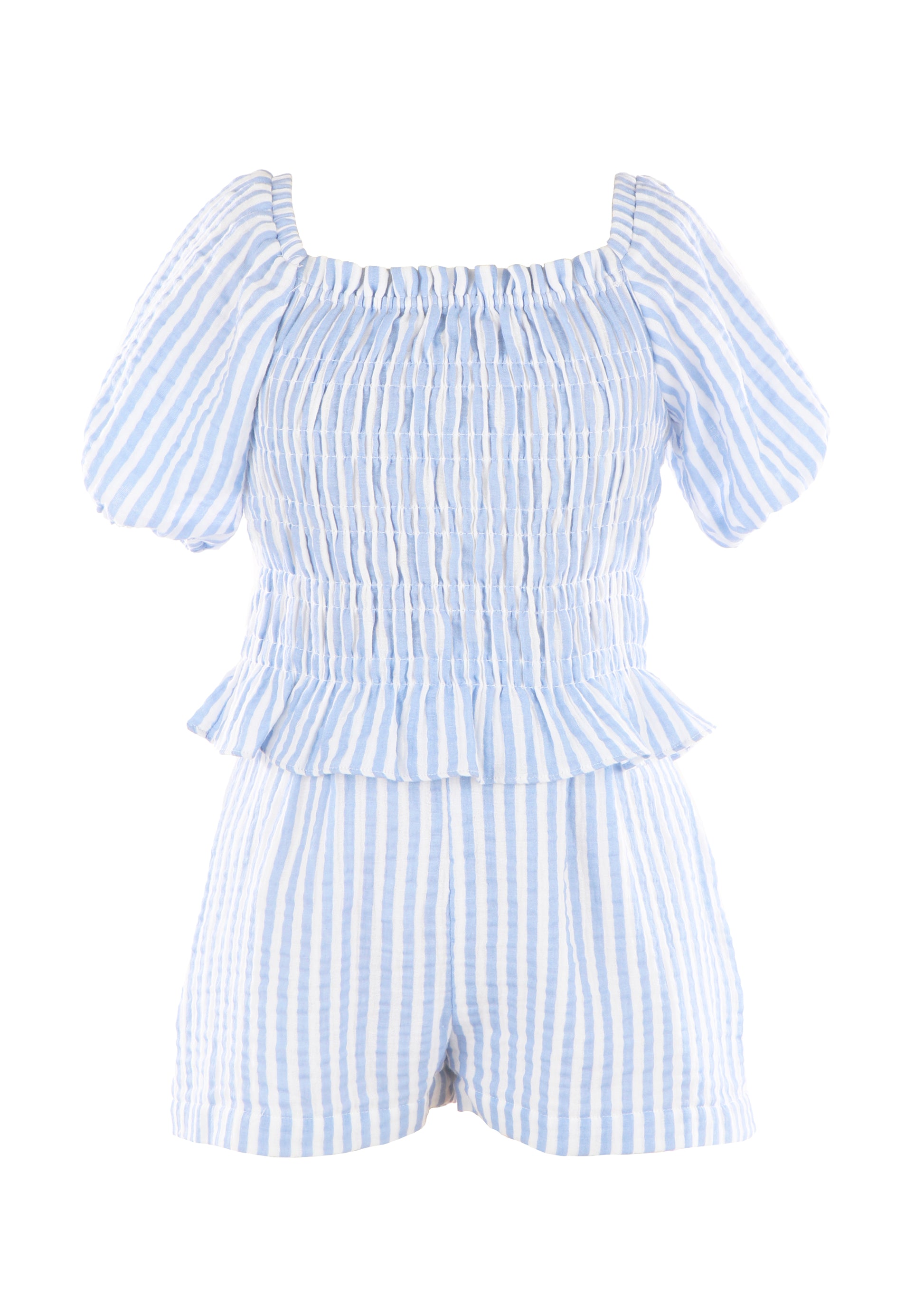 The Emily Set in bold blue and white stripes makes a statement that refuses to blend in. This isn't your average collection—it's designed for kids who know what they want and aren't afraid to stand out. The crisp striped pattern pairs timeless style with modern edge, giving your little one an outfit that commands attention. Perfect for those who dare to be different, The Emily Set delivers confidence in every wear.
