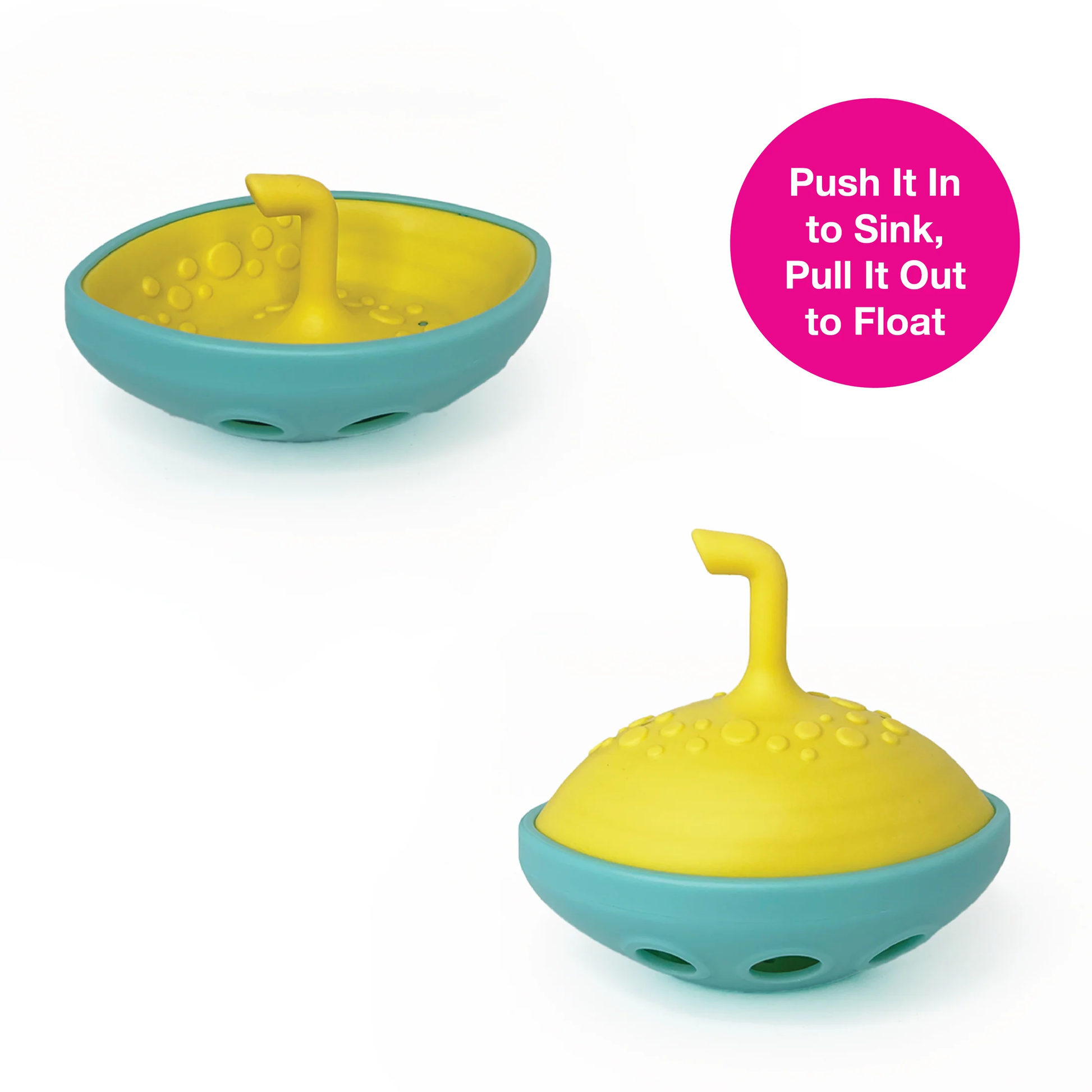 For a floating boat, push the flexible blue part down. For a sinking sub, pull the blue part up by a periscope and fill the bottom with water.