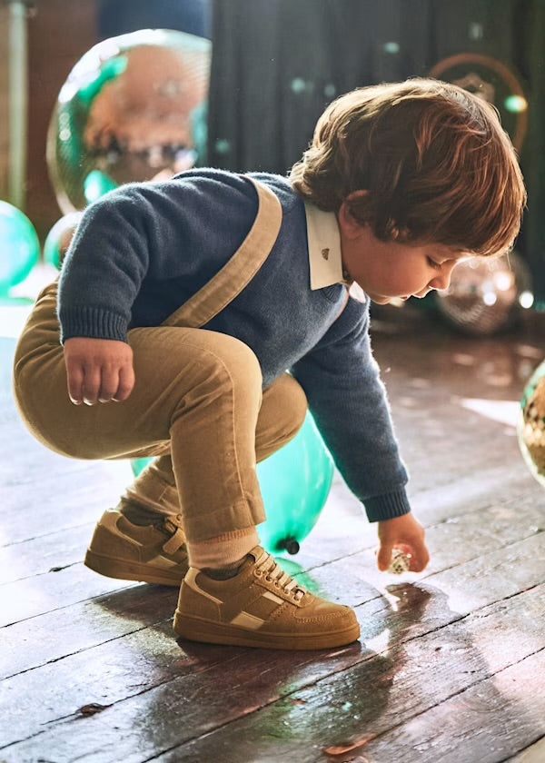 This adorable sweater features a button closure at the back for easy dressing. The hem, cuffs, and neckline are made from elastic knit for a snug fit, while contrasting color details add a playful touch. Part of our Mayoral Basic collection, it’s an essential piece to complete any outfit.