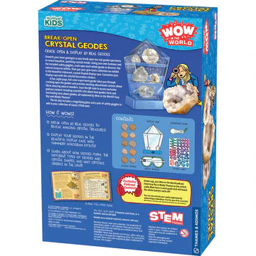 Unearth your inner geologist as you break open ten real geode specimens to reveal beautiful, sparkling crystals inside. Using your own hammer and the included safety goggles, crack open each whole geode to discover the natural treasures within. Then put your gem-tastic collection on exhibit in the beautiful iridescent, crystal-shaped display case. Customize your display case with the colorful decorative stickers.