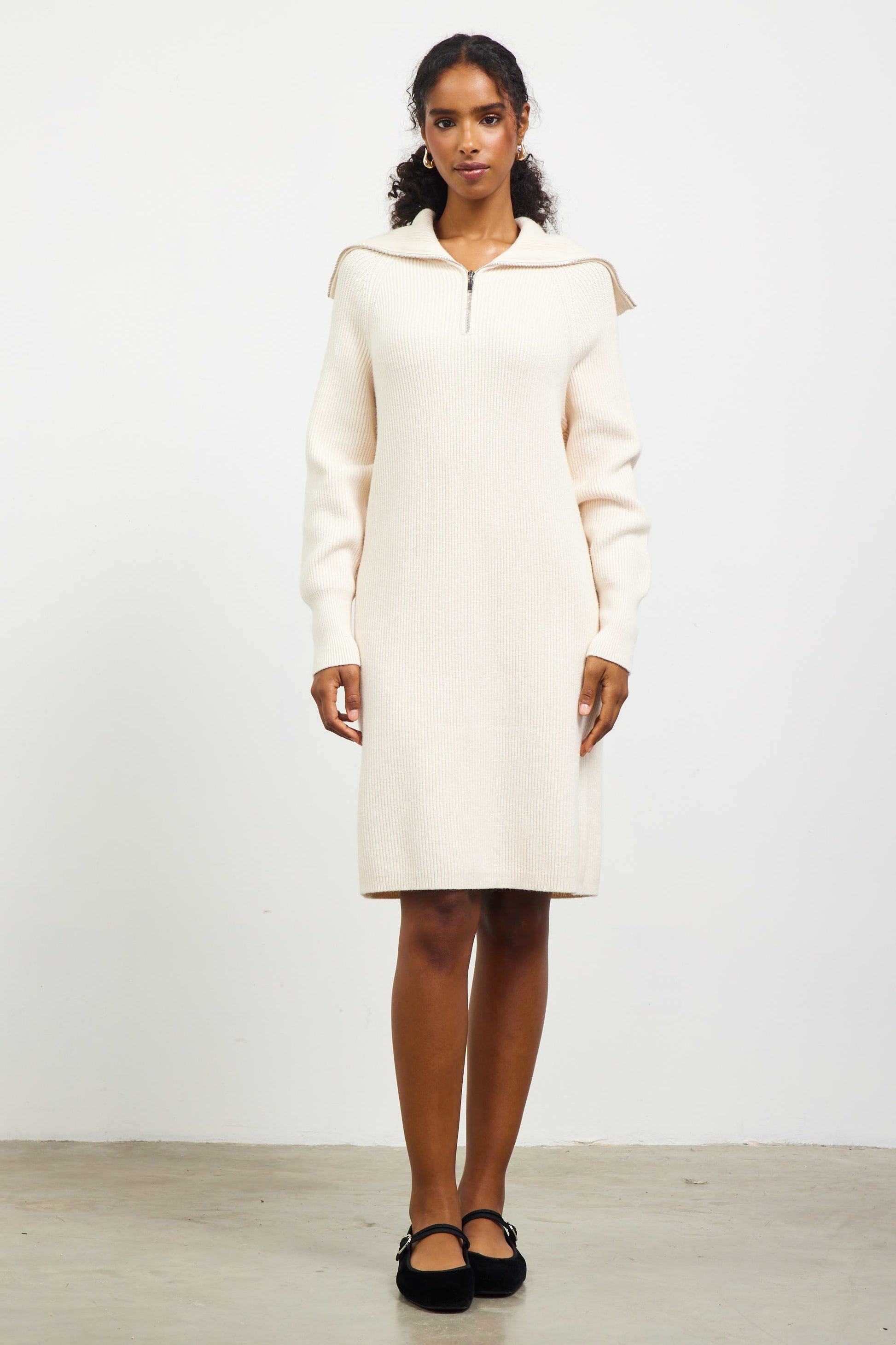 Zip Up Sweater Dress - Cream